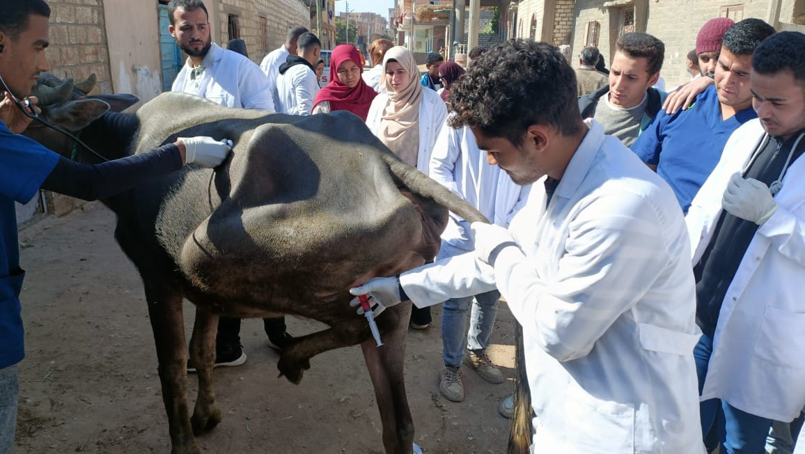 تحصين 490 رأس ماشية بقافلة جامعة سوهاج في قرية الكولة