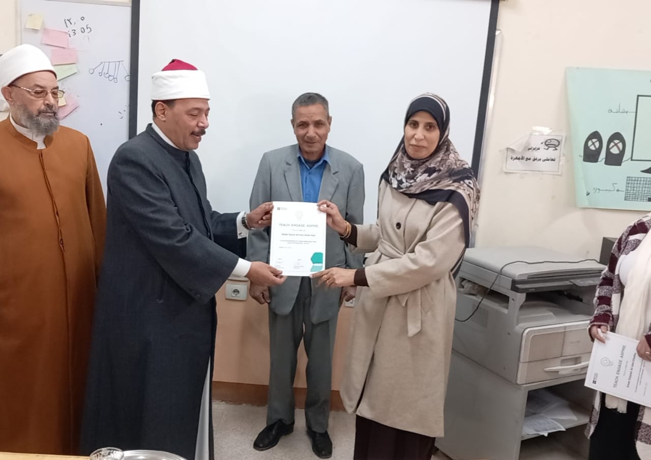 نظمت منطقة سوهاج الأزهرية بقيادة فضيلة الدكتور أحمد حمادي، رئيس المنطقة، فعاليات تدريب (TEA) لتنمية مهارات معلمي اللغة الإنجليزية بمعاهد سوهاج الأزهرية، بنظام الحضور المباشر بمعهد فتيات علي بن أبي طالب النموذجي الإبتدائي.