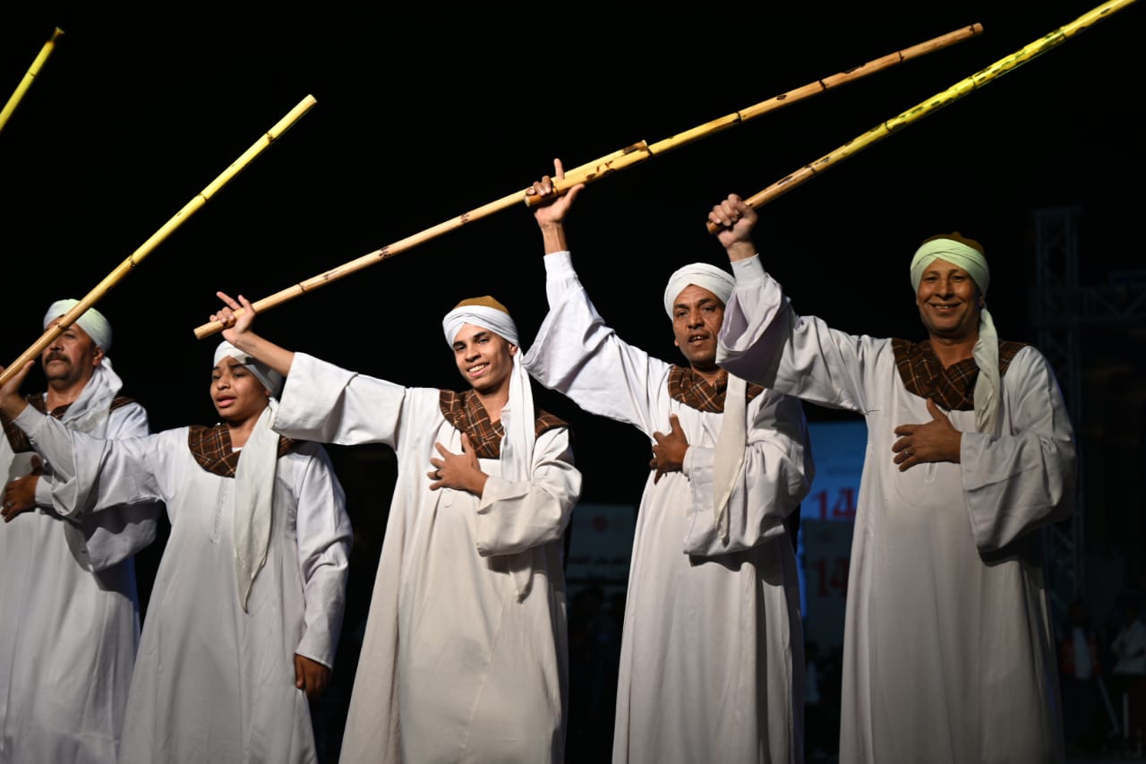 واستعرضت فرقة الأقصر للفنون الشعبية بقيادة مصطفى برعي لوحات فنية مثل "صعيدي عصيان" و"التحطيب".