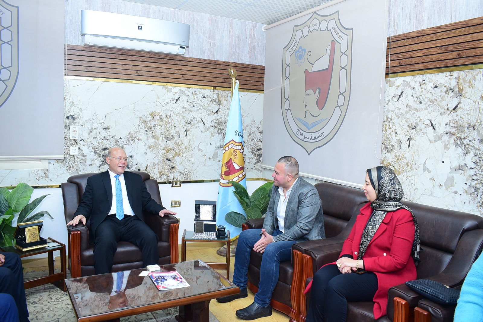 أطلقت جامعة سوهاج، النسخة السابعة من برنامج "نجوم مصرية ستارز.. خطوات نحو تحقيق نجاح حقيقي"، والذي تنظمه بالتعاون مع مؤسسة حياة كريمة ومكتبة الاسكندريه، وذلك بحضور الدكتور علاء غالب رئيس أسرة طلاب من اجل مصر، العميد محمد كمال مسئول حياة كريمة بالمحافظة، الدكتور محمود عزت مدير مركز الدراسات الاستراتيجية بقطاع البحث الأكاديمي بمكتبة الإسكندرية، وذلك بالقاعة الزجاجية بالمقرم القديم للجامعة.