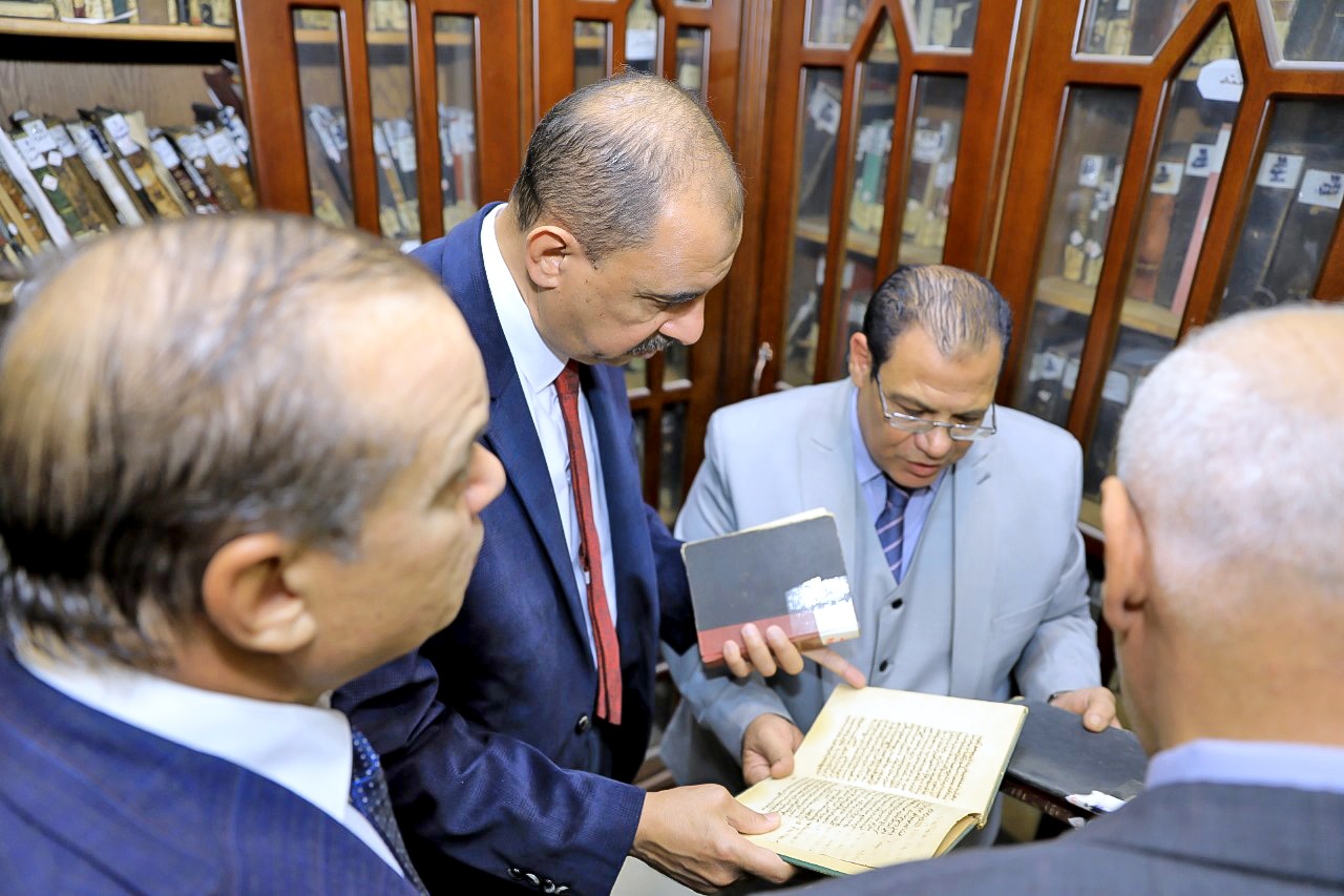 وأكد المحافظ على أهمية تحويل المكتبة إلى متحف للمخطوطات التراثية والتاريخية، ومركز تراثي ثقافي عالمي لرقمنة وترميم وتحقيق المخطوطات التراثية، وقد تفقد الأقسام المختلفة والتي تشمل " معمل الرقمنة، ومعمل ترميم الكتب التراثية، وقاعة الاطلاع الرقمية "، موجها باستكمال أعمال التسجيل اليدوي والإلكتروني لجميع الكتب والمخطوطات حفاظا عليها، وإعداد مشروع اللائحة المالية للمكتبة، بالإضافة إلى البدء في ترميم المخطوطات الأثرية من خلال الجهات المختصة .