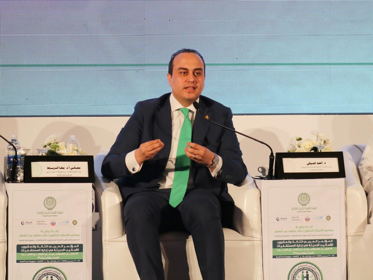 شارك الدكتور أحمد السبكي، رئيس الهيئة العامة للرعاية الصحية والمشرف العام على مشروع التأمين الصحي الشامل، في فعاليات انطلاق المؤتمر العربي الثالث والعشرين بعنوان "الأساليب الحديثة في إدارة المستشفيات"، الذي تنظمه المنظمة العربية للتنمية الإدارية التابعة لجامعة الدول العربية، على مدار يومي 10 و11 ديسمبر الجاري، تحت شعار "الذكاء الاصطناعي في القطاع الصحي: الأبعاد والتحديات"، وذلك بأحد الفنادق الكبرى في القاهرة.