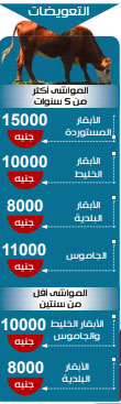 12 ألف جنيه للأبقار البلدى و15 ألفا لطلائق الأبقار والجاموس