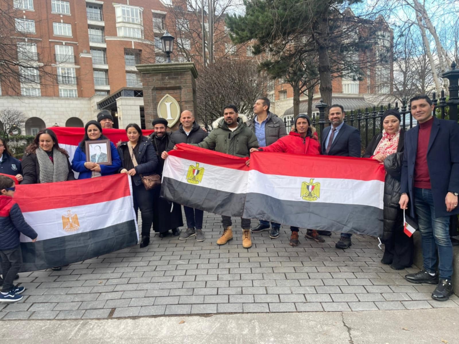 على جانب آخر، ومن أمام مقر إقامة الرئيس عبد الفتاح السيسي كان يصطف أعضاء الجالية المصرية في حشد كبير، بالأعلام والهتافات والأناشيد الوطنية، تحية للرئيس عبد الفتاح السيسي خلال إقامته بأيرلندا.