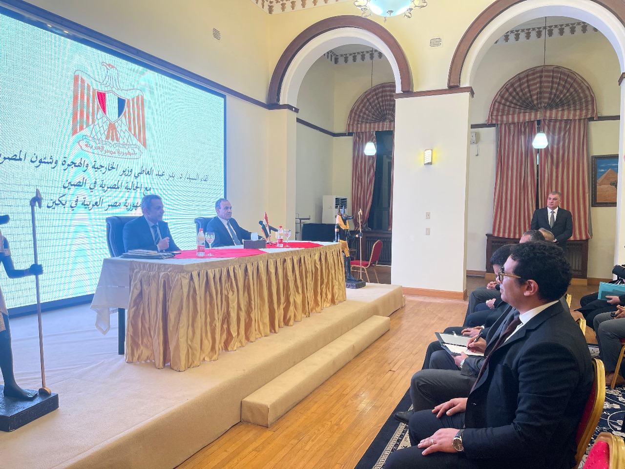 وزير الخارجية والهجرة يلتقي رموز الجالية المصرية في الصين
