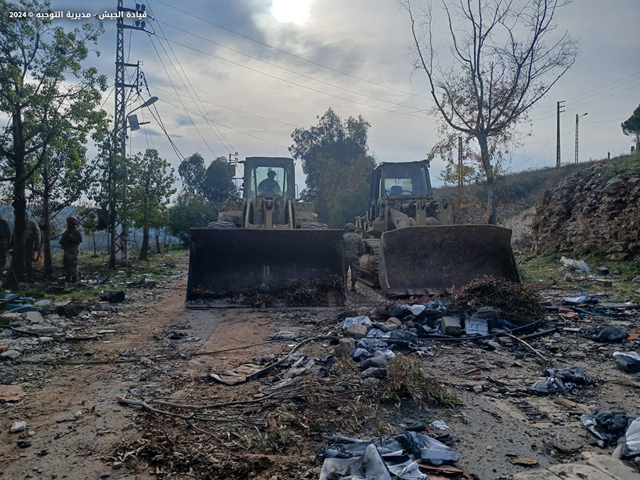 قال الجيش اللبناني، إن قواته تعمل على فتح طرقات نبع إبل والشريقي وحي جبلي المؤدية إلى بلدة الخيام - مرجعيون من الجهة الشمالية، لإزالة الردم والذخائر غير المنفجرة من مخلفات العدوان الإسرائيلي، وذلك بالتنسيق مع اللجنة الخماسية لمراقبة تنفيذ اتفاق وقف إطلاق النار (Mechanism) ضمن خطة الانتشار في المنطقة.