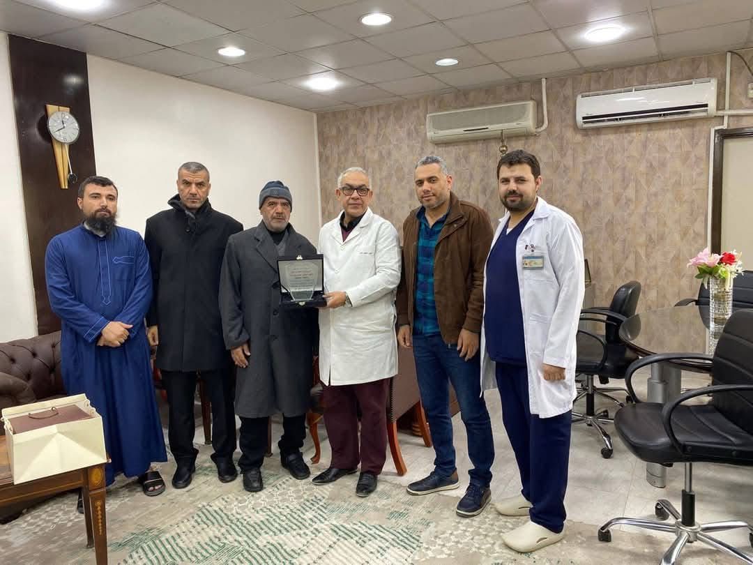 مصاب فلسطيني يقدم هدية تذكارية لأطباء مستشفى الهرم تقديراً لمجهوداتهم المبذولة خلال رحلة علاجه