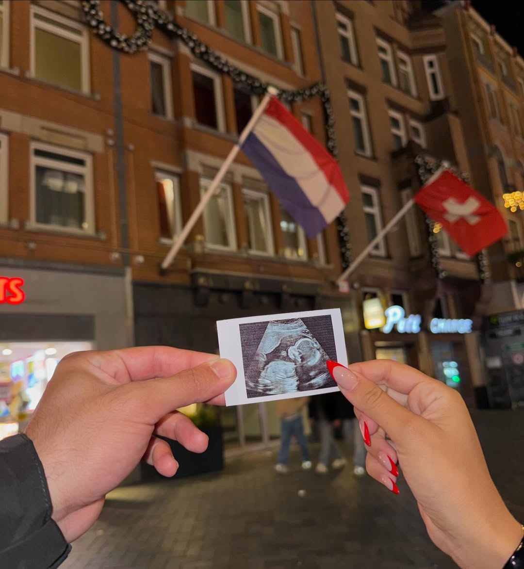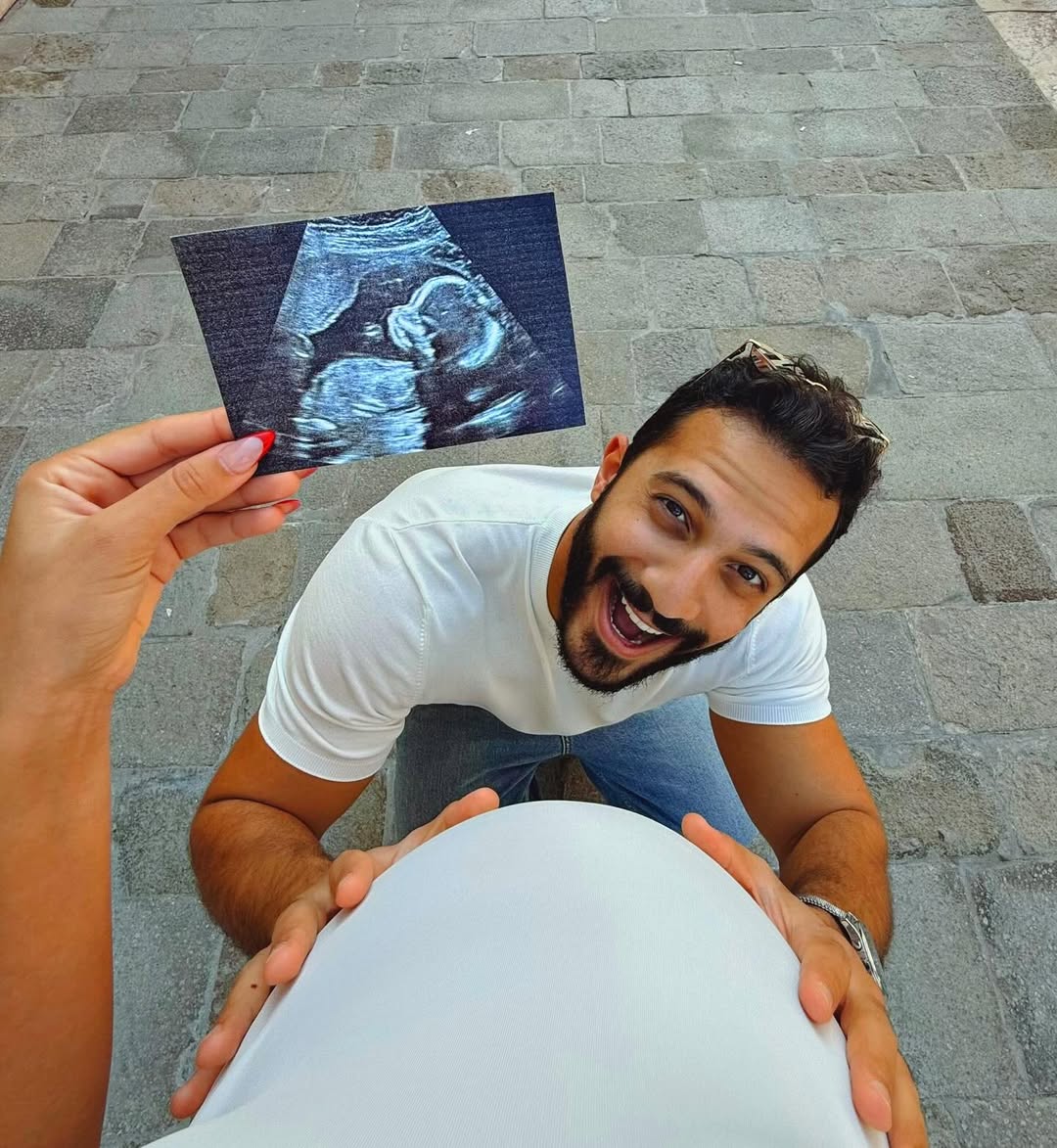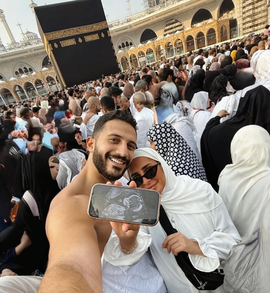 وأظهرت الصور احتفالهما بهذه اللحظة المميزة حول العالم على مدار الأشهر الماضية، وعلق فرج قائلاً في منشوره: Taking our baby with us everywhere, Ops! We forgot to tell you that we’re having a baby… اللهم أنبته نباتا حسنا، واجعله قرة عيننا واحفظه، وبارك لنا فيه".