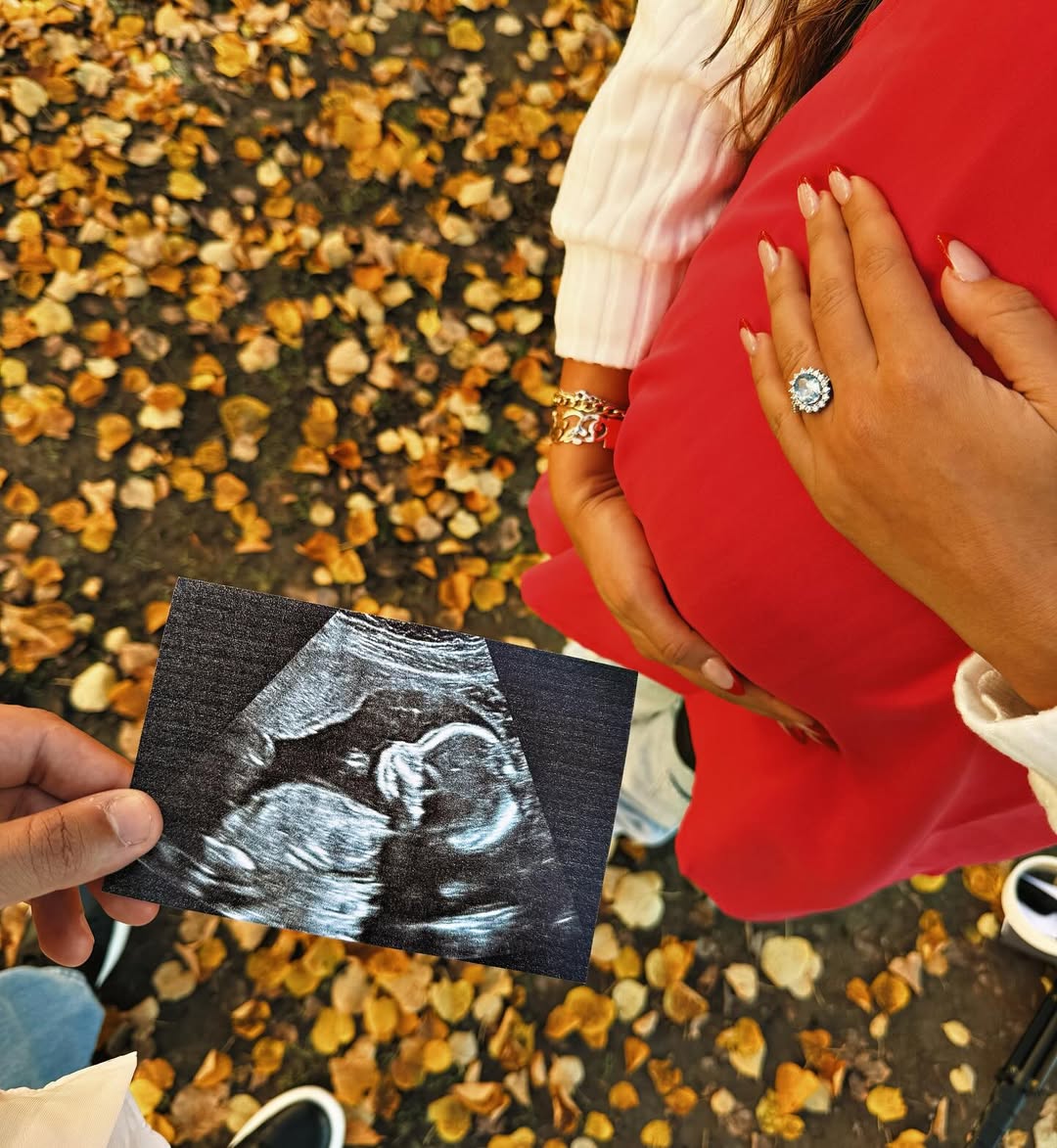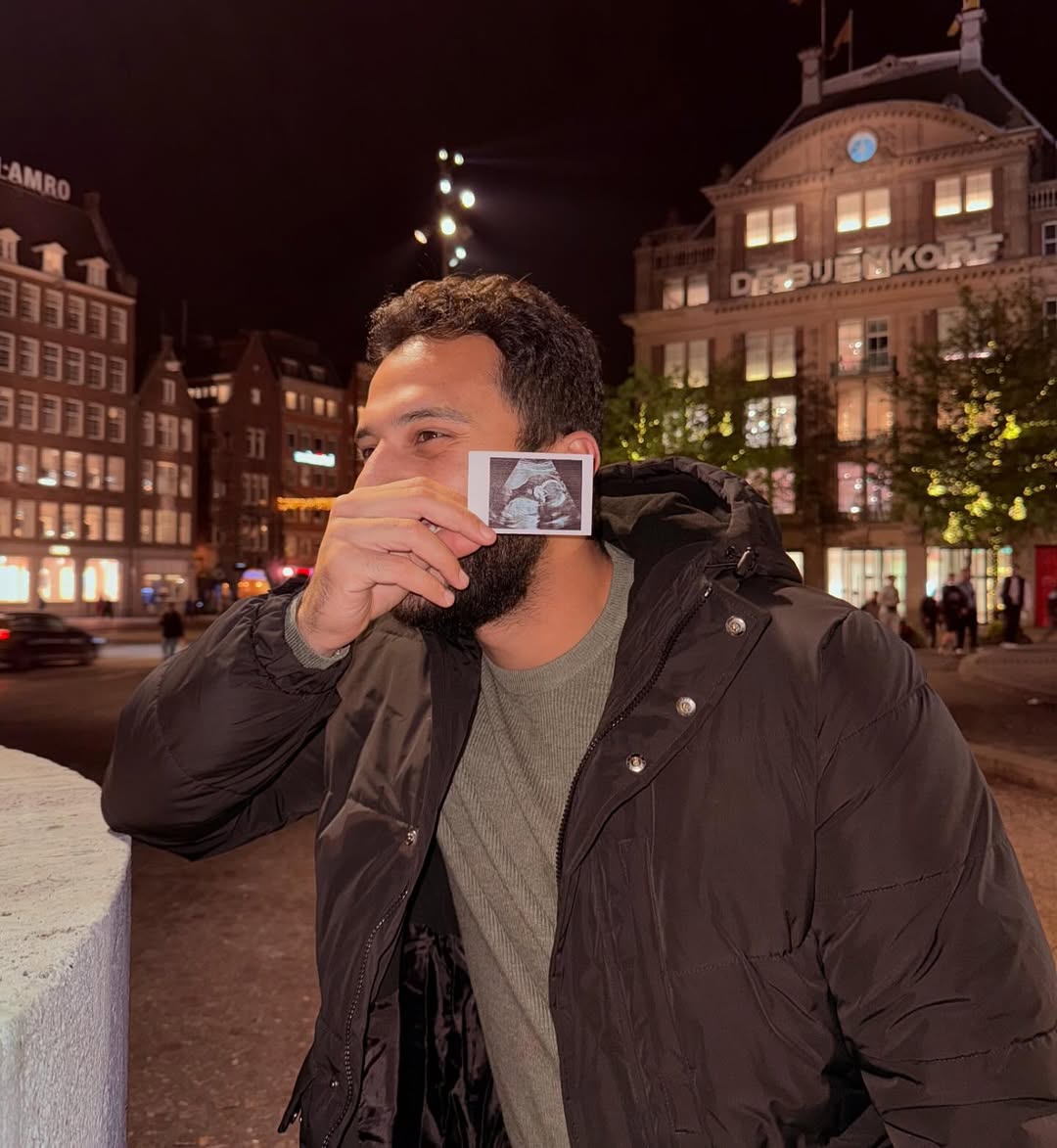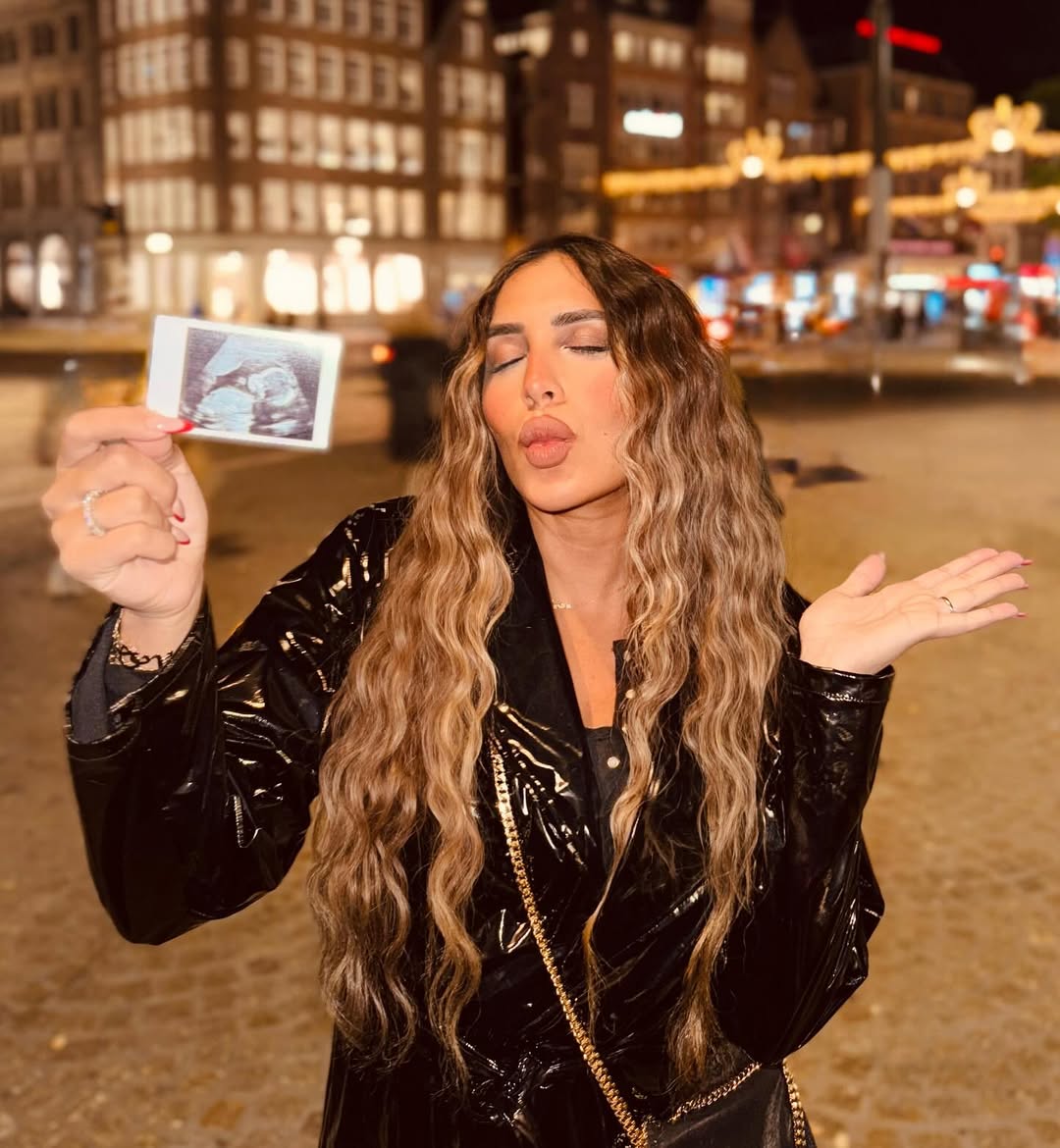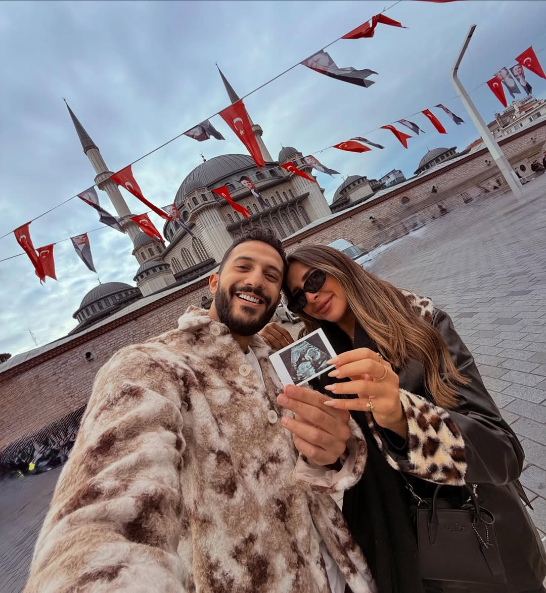 وأظهرت الصور احتفالهما بهذه اللحظة المميزة حول العالم على مدار الأشهر الماضية، وعلق فرج قائلاً في منشوره: Taking our baby with us everywhere, Ops! We forgot to tell you that we’re having a baby… اللهم أنبته نباتا حسنا، واجعله قرة عيننا واحفظه، وبارك لنا فيه".