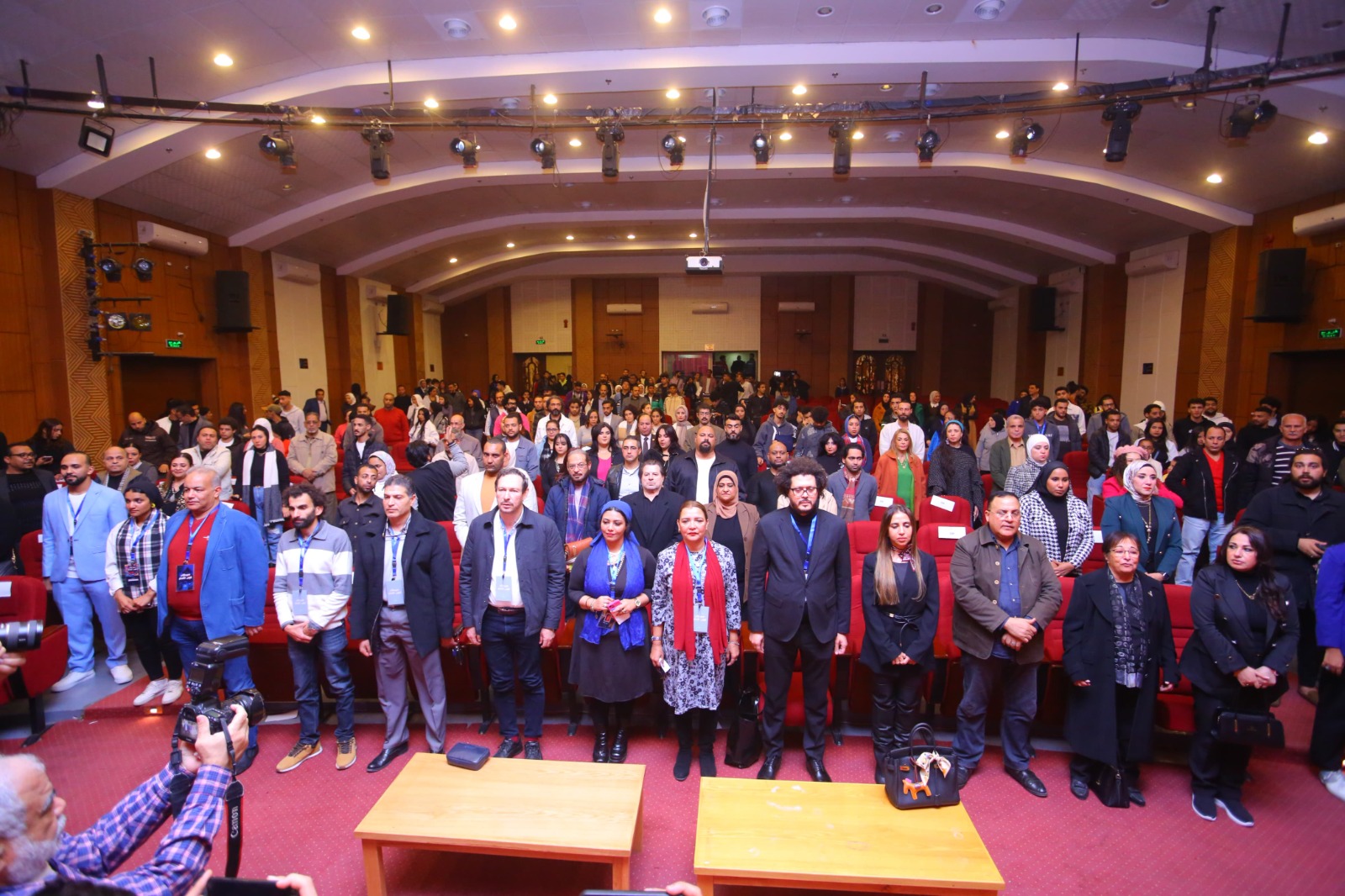 وطالبت مقدمة حفل الافتتاح ولاء الحديني كل الحضور بالوقوف دقيقة حداد علي روح الفنان الكبير الراحل نبيل الحلفاوي، وقدمت اعتذار من الشاعر هشام الجخ الذي كان مفترضا تقديمه للحفل ولكنه اعتذر لظروف صحية.