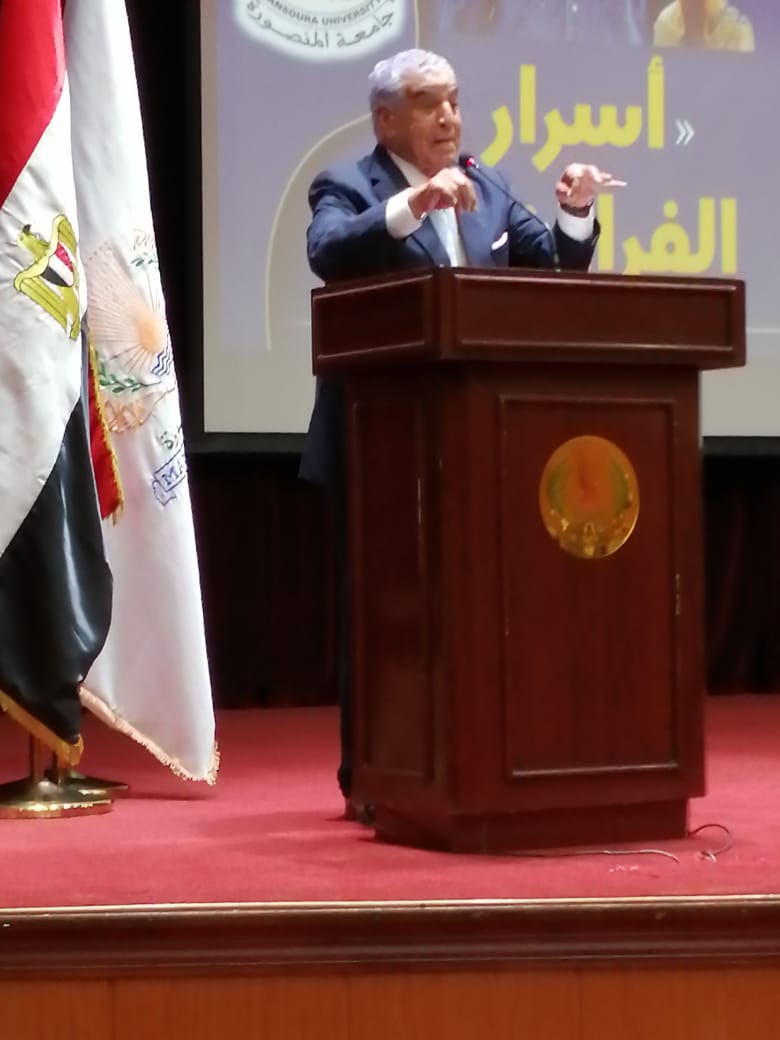 جاء ذلك خلال محاضرته ضمن فعاليات الصالون الثقافي الذي تنظمه جامعة المنصورة برئاسة الدكتور يوسف خاطر رئيس الجامعة وتنظيم الدكتور طارق غلوش نائب رئيس الجامعة للدراسات العليا والبحوث وأدار الحوار الدكتور محمد عبد اللطيف عميد كلية السياحة والفنادق بجامعة المنصورة .