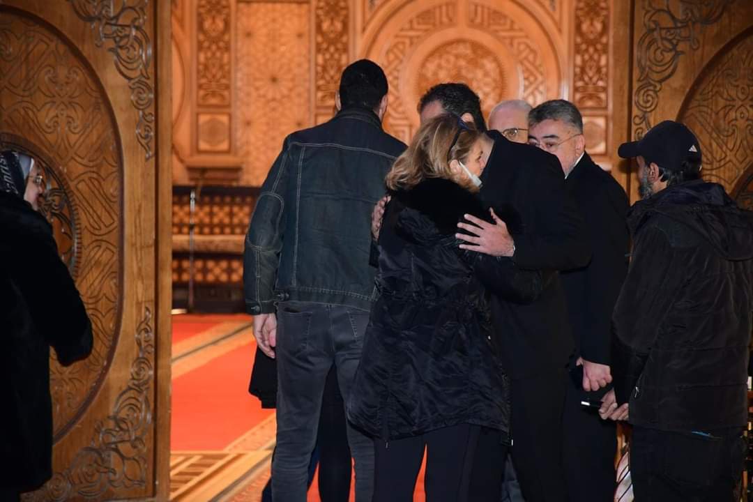 وكان أول الحضور بجانب أسرة الراحل، كلا من الدكتور أشرف زكي، نقيب المهن التمثيلية و النجمة يسرا والفنان لطفي لبيب والفنان محمود قابيل.