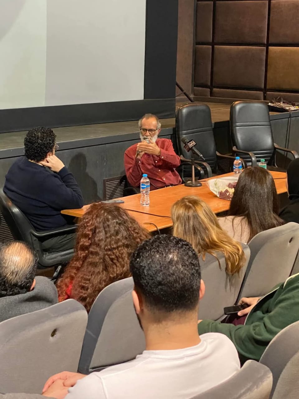 وأدار ندوه كامل الباشا المخرج أحمد نادر، والذي تحدث عن الفنان الفلسطيني وكيفية تحوله من فنان مسرحى إلى دائرة أوسع وأكبر وسينما.