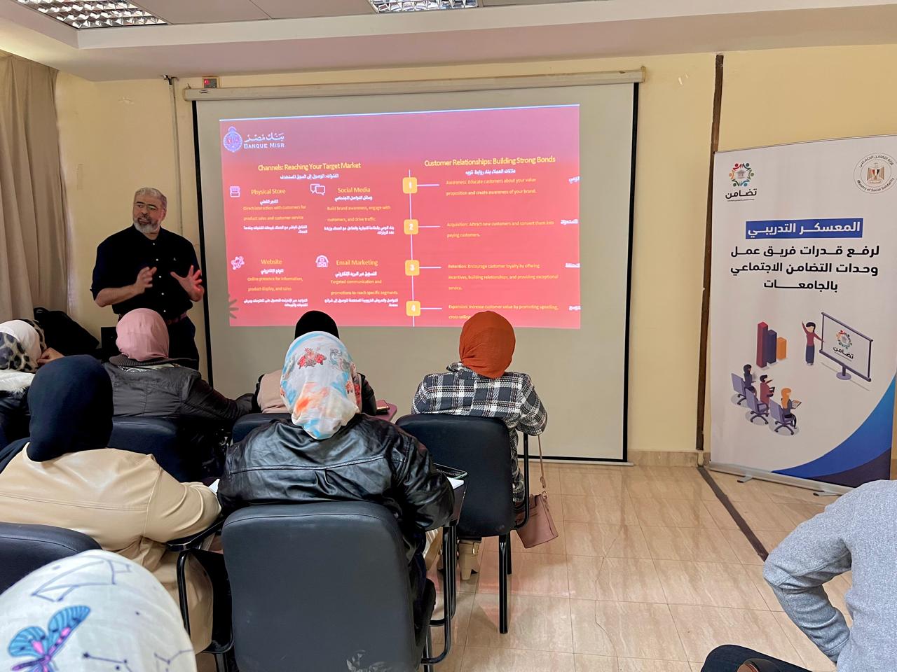 وأكد الدكتور محمد العقبي مساعد وزيرة التضامن الاجتماعي والمشرف العام على مشروع وحدات التضامن الاجتماعي أن التدريب هدف إلى رفع قدرات المنسقين، وإكسابهم خبرات جديدة في إدارة الأنشطة التوعوية لتحسين مستوى أداء الوحدات على مستوى الجامعات المصرية.