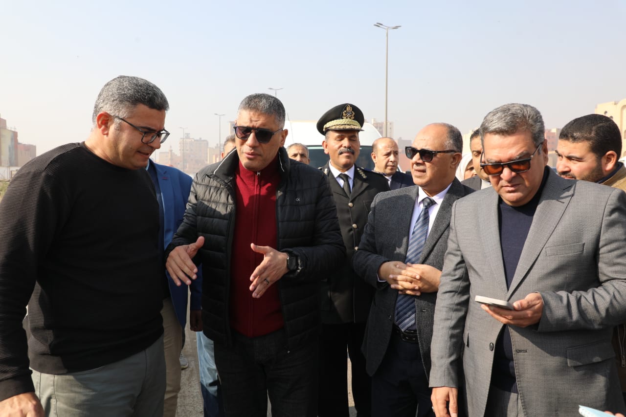 و تابع المحافظ خلال جولته أعمال تهيئة وتمهيد المواقع موجها رؤساء الأحياء بالتعاون مع الهيئة العامة للنظافة والتجميل لسرعة الإنتهاء من رفع نواتج أعمال توسعة وتطوير الدائرى وأعمال دهان ورفع كفاءة العقارات المحيطة بالطريق.