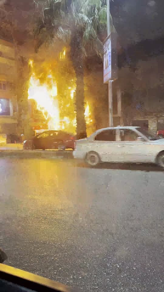 وقد تم دفع بـ 7 سيارات إطفاء إلى موقع الحريق، الذي نشب في مطعم فرع شارع ضياء، في شارع حسن محمد بشارع فيصل، امتدت نيرانه إلى شقق سكنية قيد الإنشاء تقع فوق المطعم.