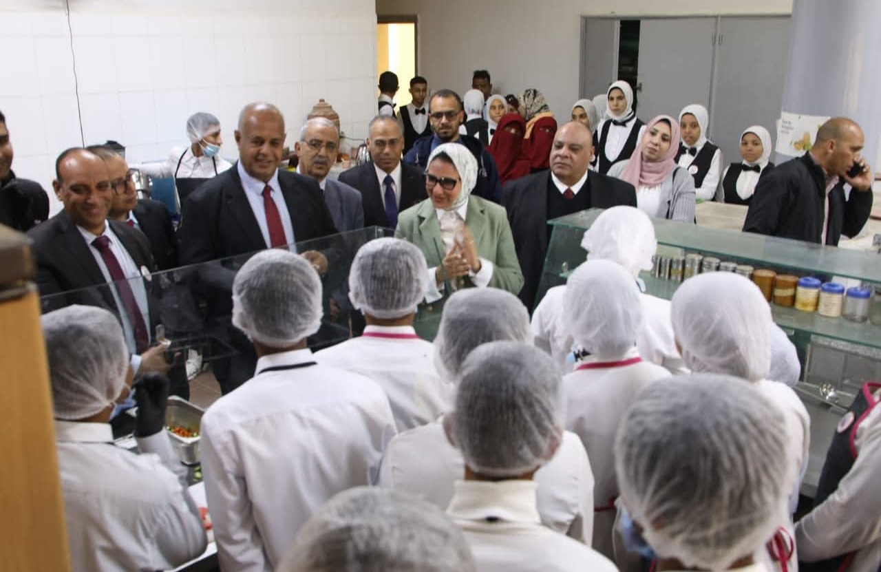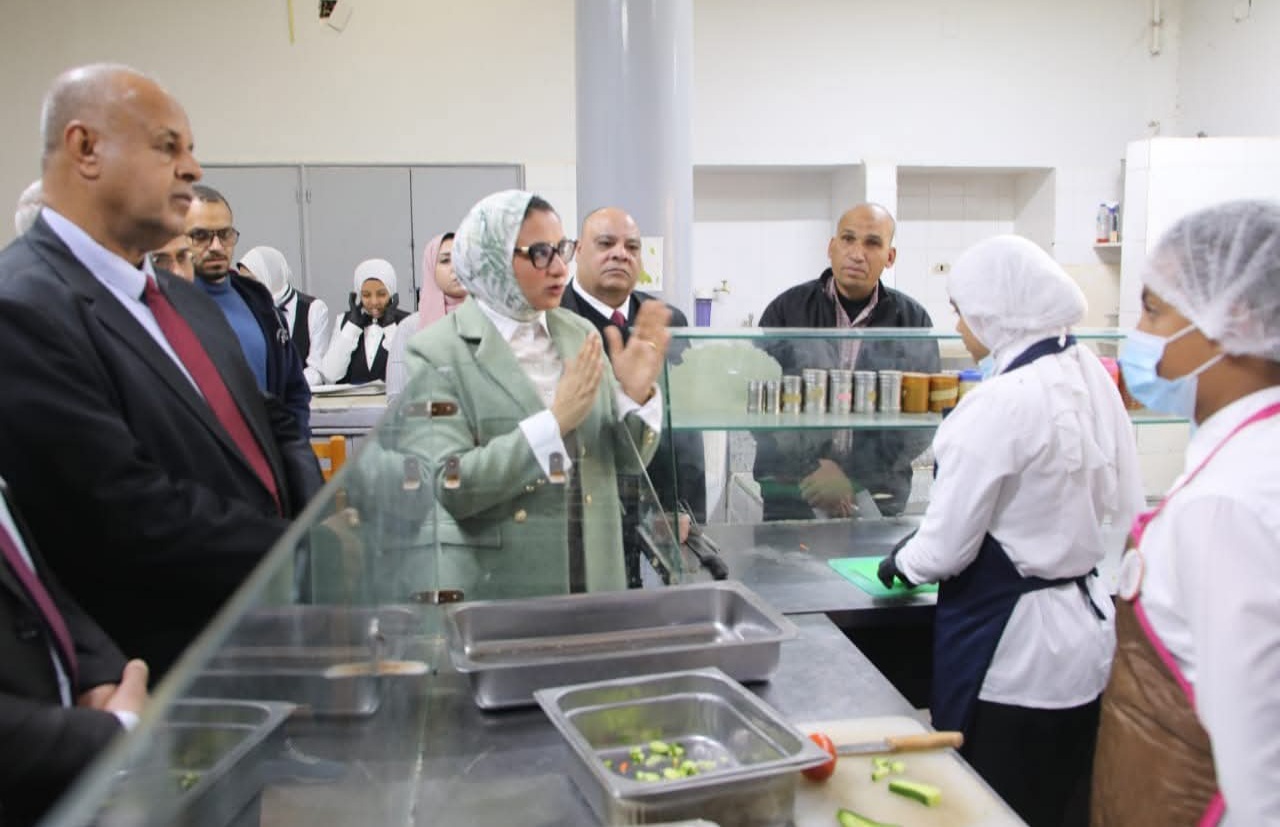 خلال جولتها التقت نائب محافظ الوادي الجديد الطلاب وأجرت معهم حوارًا وديًا، وأثنت على البداية المبشرة للدراسة بالتخصص الفندقي الذي تم تطبيقه هذا العام لأول مرة بالمحافظة، مُوجهةً بالاهتمام بدراسة اللغات الأجنبية إلى جانب التدريب العملي للطلاب؛ لصقل الخبرات والمهارات اللازمة لسوق العمل.