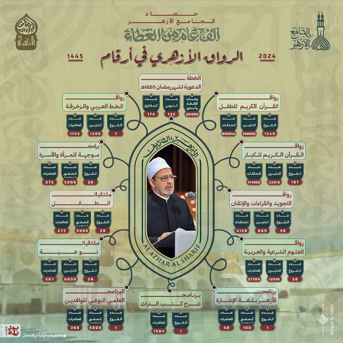 وشهد رواق العلوم الشرعية والعربية، إقبالا كبيرا بالجامع الأزهر والفروع الخارجية، حيث بلغ عدد المتقدمين نحو (30000) ألف دارسًا، كما واصل رواق الخط العربي حضوره المميز، حيث وصل عدد المحاضرين فيه 19 محاضرا، يقدمون 240 محاضرة أسبوعيا لـ 1200 من الدارسين والمحبين للخط العربية وفنونه، بواقع 57 ألف دارس سنويا، ونظرا للإقبال الكبير فقد شهد الرواق افتتاح (٦) مقرات جديدة لرواق الخط العربي والزخرفة الإسلامية، بمحافظات أسوان، الأقصر، قنا، أسيوط، الغربية، الإسكندرية.