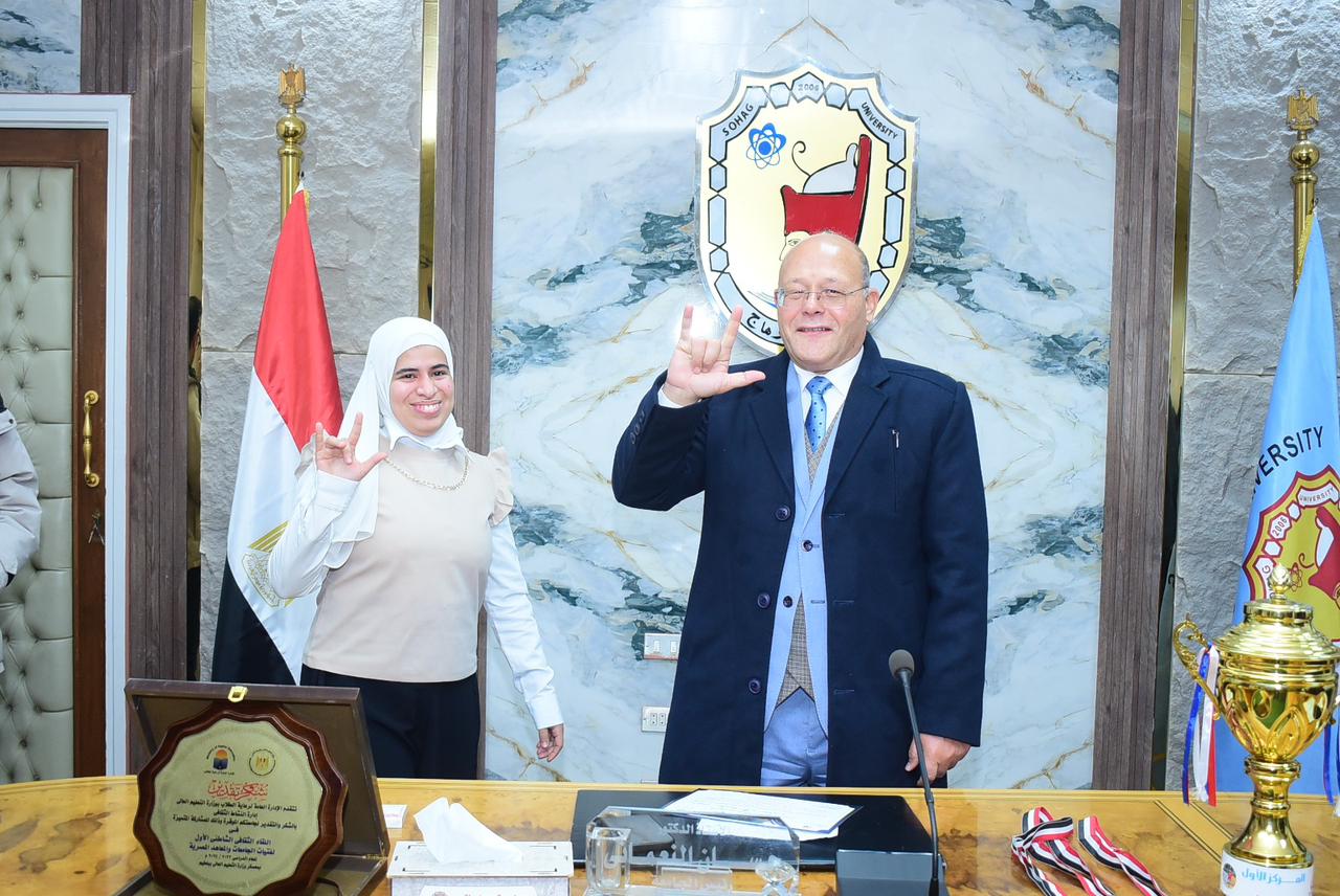 تكريم طلاب جامعة سوهاج الفائزين بالمراكز الأولى في الملتقيات الرياضية والثقافية والفنية
