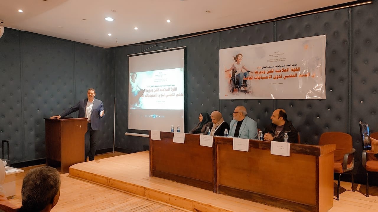 وشهدت الجلسة البحثية الختامية، بحثين، جاء الأول بعنوان "مداخلات العلاج بالفن في العلاجات التكيميلية لذوي الهمم والاحتياجات الخاصة"، للباحثة سارة نصار، باحث دكتوراه في التربية الخاصة، واستشاري نفسي العلاج بالفن، وتناولت خطة علاجية ذات استهداف ثلاثي يتم من خلالها دراسة، محور الطفل حيث التدقيق في التشخيص وتحديد جميع الاضطرابات والصعوبات، محور داخل الأسرة لتحديد العدوى النفسية العامة مثل انتشار التوتر، الضغط العصبي، والمشاكل الزوجية والانعزال عن المجتمع والاصابة بالصدمة الأولى عند، التشخيص، ومحور خارج الأسرة حيث تتعرض الأسرة إلى التنمر، والرفض من الأقرباء والأصدقاء وبالتالي ضعف العلاقات الاجتماعية التفاعلية المهمة، واختتمت حديثها بورشة تفاعلية للكبار، لفهم أسس وآليات العلاج بالفن.