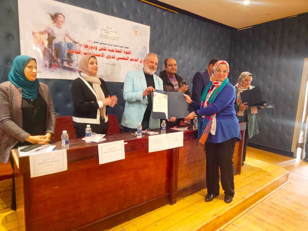 فيما ناقش البحث الثاني "القوة العلاجية للفن ودورها في الدعم النفسي لذوي الاحتياجات الخاصة" شاركت به آمال أحمد علي، باحث ثقافي بالهيئة العامة لقصور الثقافة، التي ناقشت محاور البحث المتمثلة في، القوة العلاجية للفن ودورها في الدعم النفسي لذوي الاحتياجات الخاصة، الفنون التشكيلية ودورها في تنمية المهارات ورفع الكفاءة النفسية لذوي الاحتياجات الخاصة، فنون الأداء الحركي ودورها في الدعم النفسي لذوي الاحتياجات الخاصة، السيكودراما والدعم النفسي لذوي الاحتياجات الخاصة، والفن وتعديل السلوك لذوي الاحتياجات الخاصة.