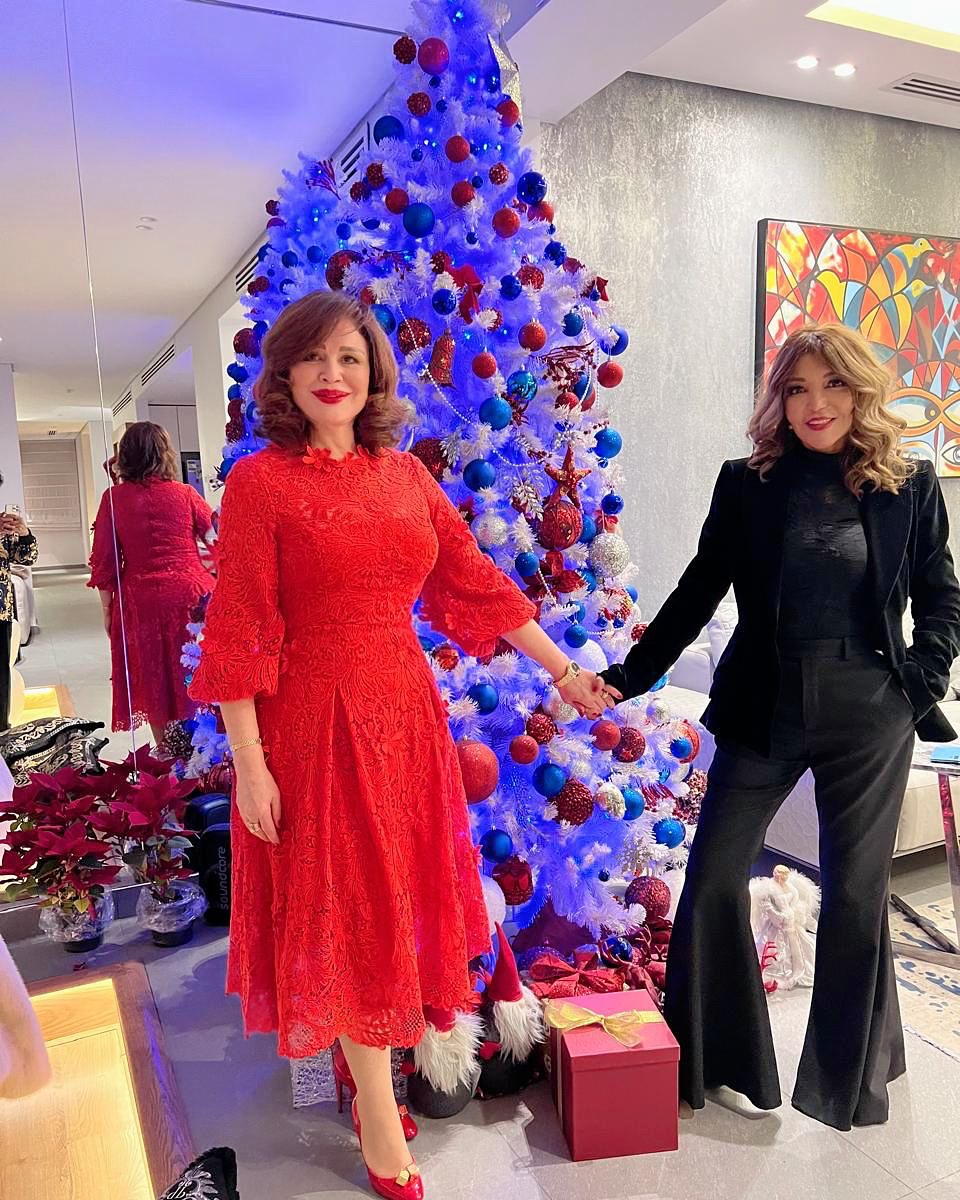 في منزل كارول سماحة.. إلهام شاهين تحتفل بالكريسماس برفقة أصدقائها (صور)
