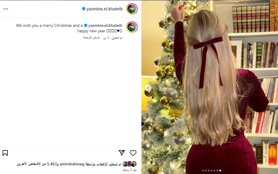 تملك الإعلامية ياسمين الخطيب ذوقًا خاصًا يجعلها تتربع على عرش الأناقة لتصبح مثال تقتدي به أغلب الفتيات والسيدات من هذا الجيل، وحرصت ان تحتفل بالكريسماس بجانب الديكور المعد له خصيصًا في منزلها.
