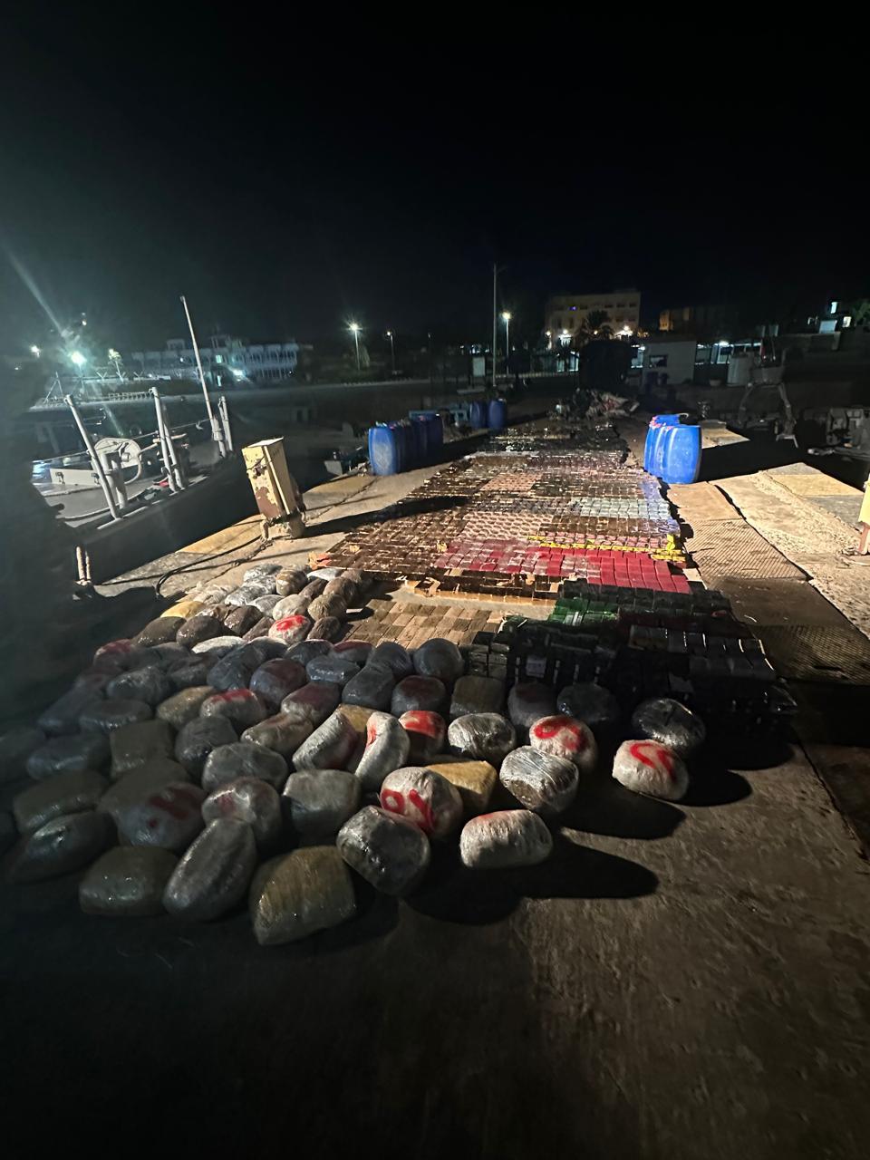 حيث تم الاشتباه فى أحد مراكب الصيد، وعلى الفور قامت القوات البحرية بدفع عدد من الوحدات البحرية لضبط المركب المشتبه به وتنفيذ إجراءات تفتيشه، وتمكنت عناصر القوات البحرية من ضبط عدد (2) فرد على متن المركب عثر بحوزتهما على كميات من المواد المخدرة للحشيش والهيدرو وعدد من أجهزة الهواتف المحمولة، وتم تسليم الأفراد والمضبوطات إلى جهات الاختصاص لاتخاذ الإجراءات القانونية حيالهم.