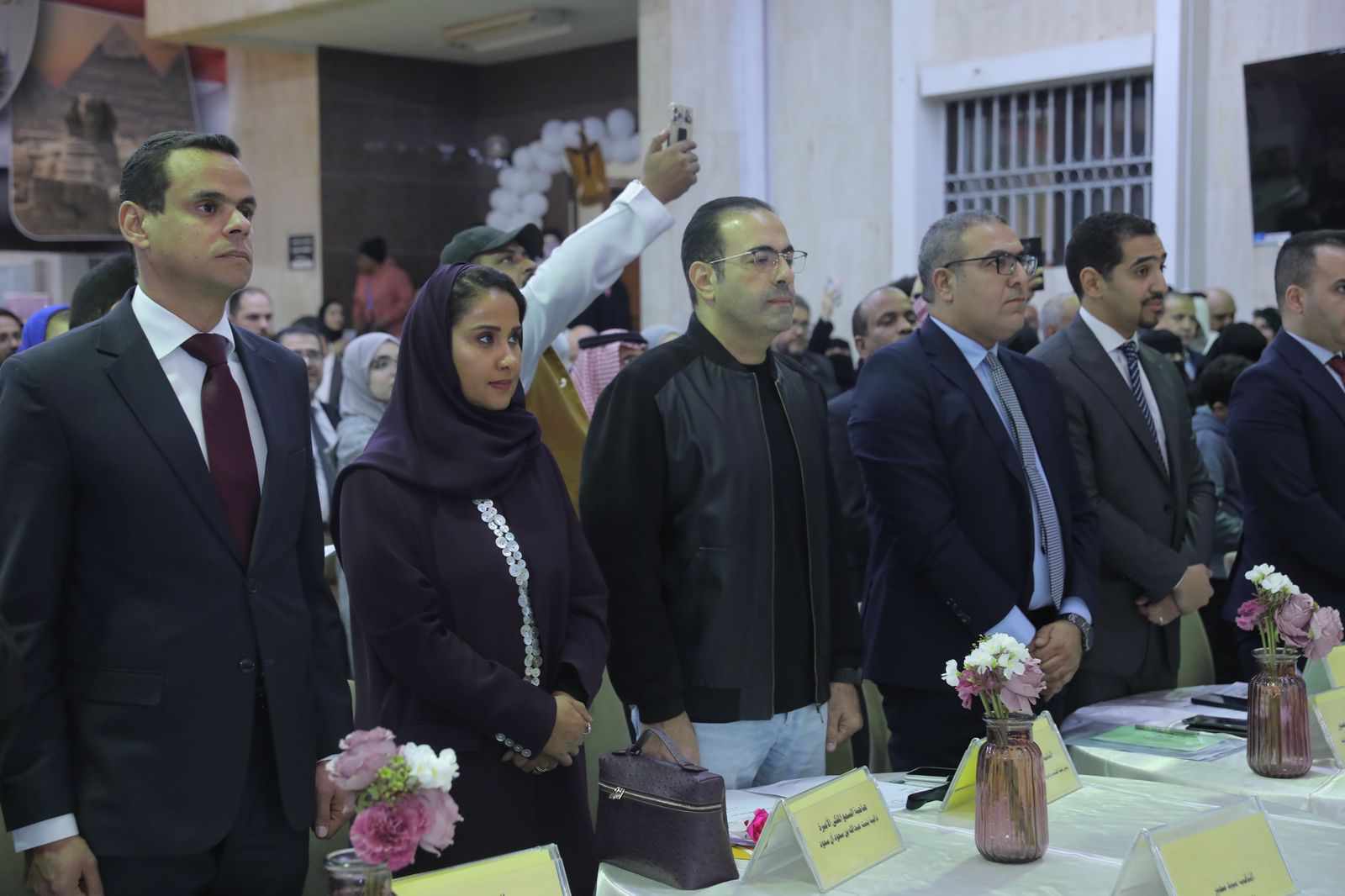 والمستشار الثقافي لجمهورية مصر العربية بالسعودية الدكتور أحمد سعيد منصور والاعلامي علاء خليل ، امين صندوق الاتحاد ، والمهندس امجد المناوي رئيس لجنة التطوير بالاتحاد والمحاسب شريف النسيرى والمحاسب محمد شحاتة أعضاء مجلس إدارة اتحاد شباب المصريين بالخارج والدكتور علي حنفي رئيس لجنة ذوى الهمم بالاتحاد.