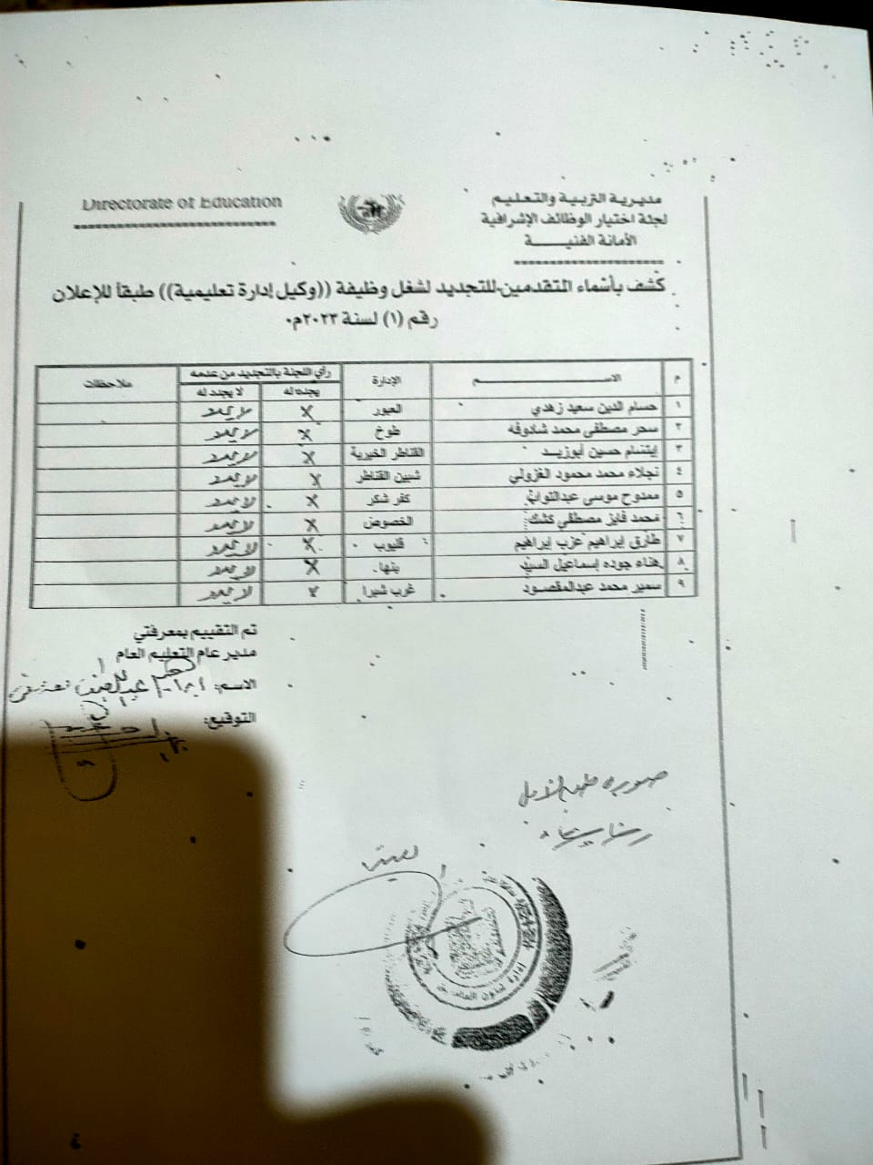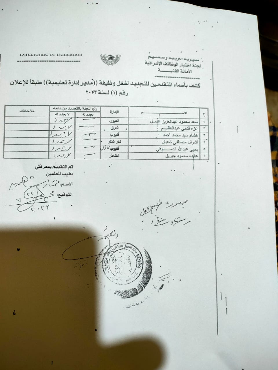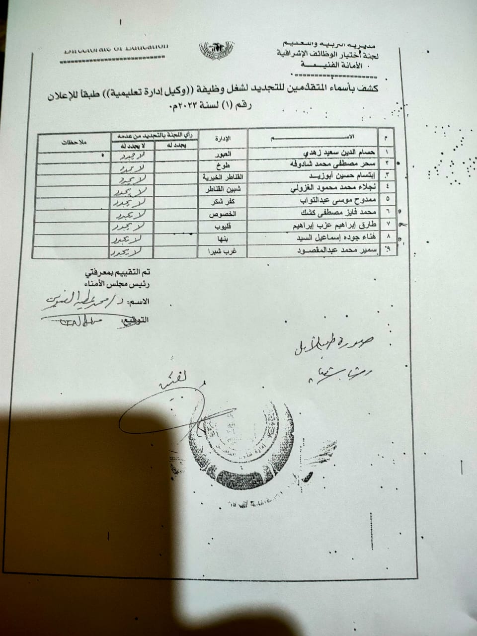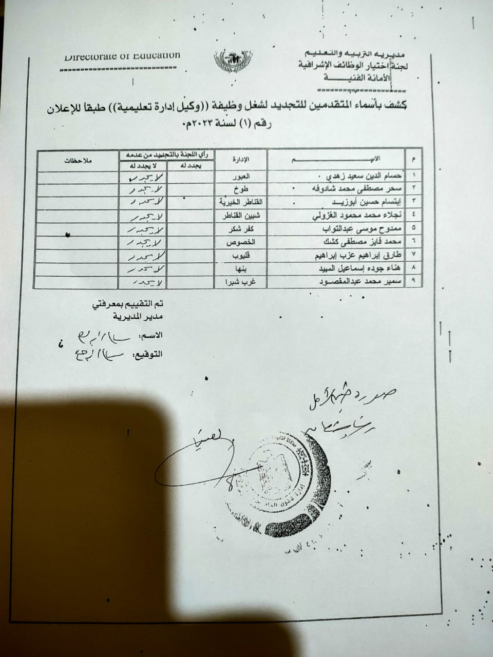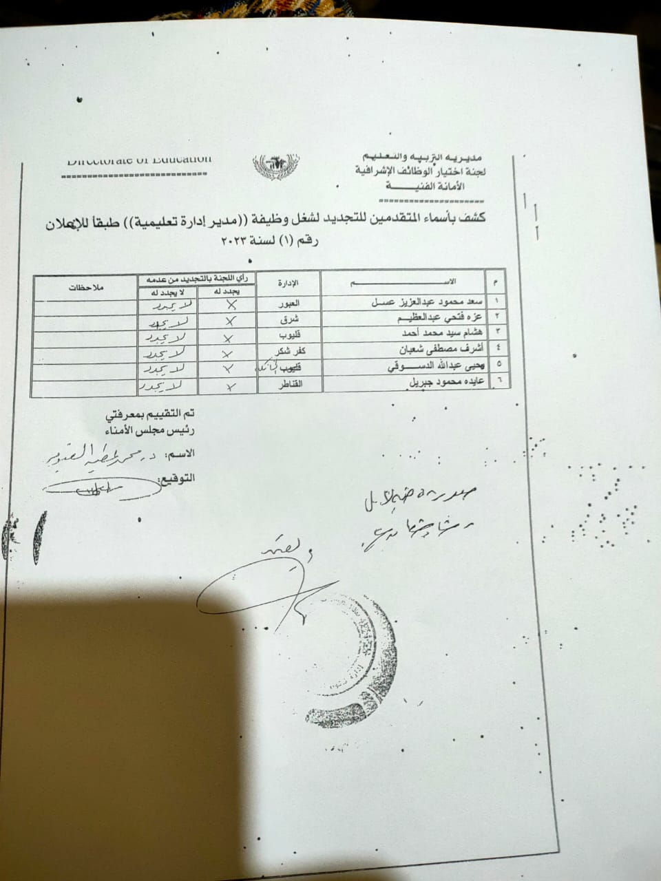 ما يثير ويلفت النظر في أوراق المسابقة هو ان تقييم مديرة المديرية السابق جاء بعدم التجديد لكل مديرين الإدارات والوكلاء وبدون استثناء، وكذلك وكيل المديرية وايضا مديرة الشئون التنفيذية والمدير العام ورئيس مجلس الأمناء ونقيب المعلمين وعميد كلية التربية ومدير التعليم الفنى ومدير عام الخدمة المدنية بالتنظيم والادارة الجميع اجمع بالفعل بعدم التجديد وبالرغم من ذلك مضى عام وثلاثة شهور وحتى الان مستمرون في مناصبهم !!!