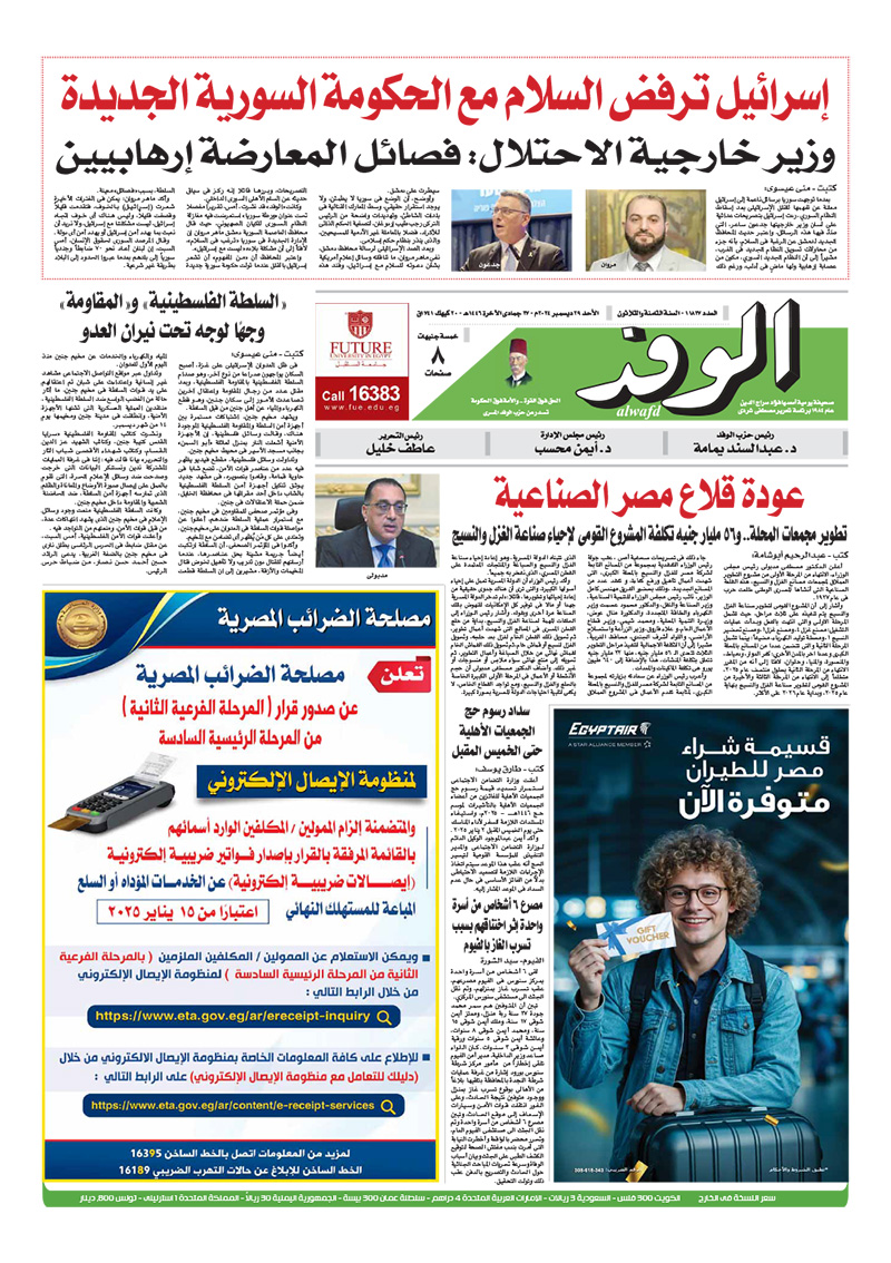 تنشر جريدة الوفد في عددها الصادر، غدًا الأحد، العديد من الموضوعات والتقارير الإخبارية المهمة، أبرزها: "عودة قلاع مصر الصناعية".