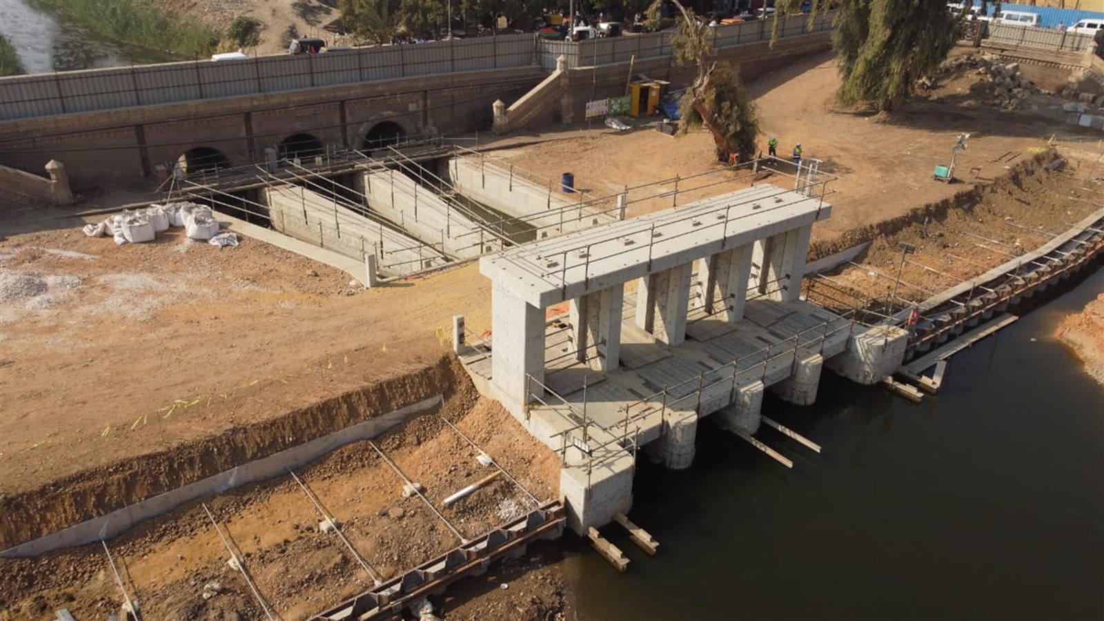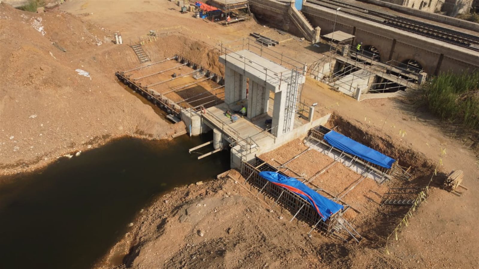 وتم الإنتهاء من صب الخرسانة المسلحة لكل من قنطرة الديروطية وقنطرة البدرمان ، وتركيب البوابات ومنظومة التشغيل .