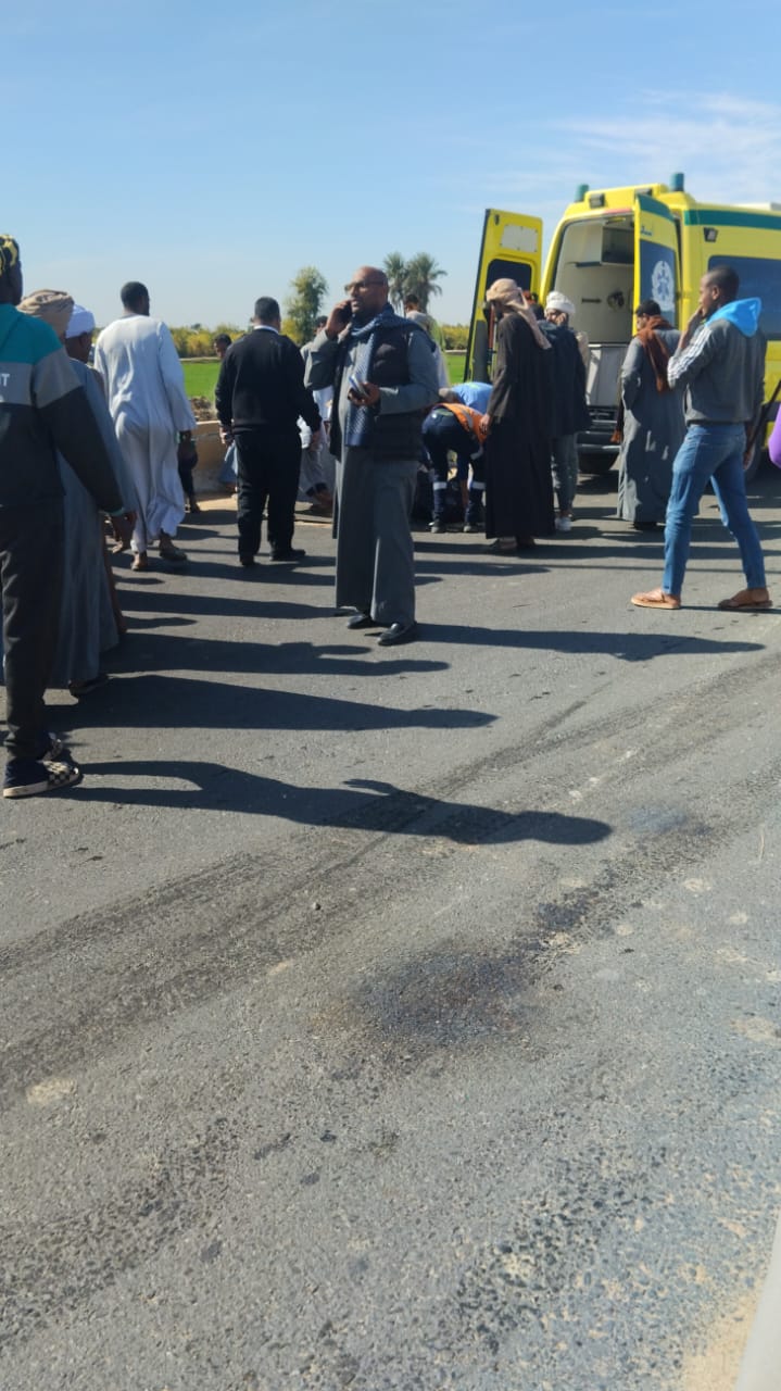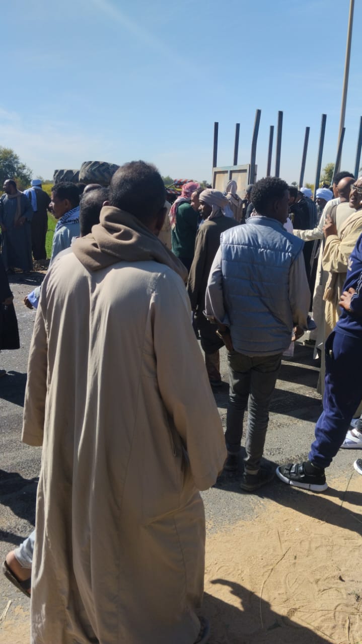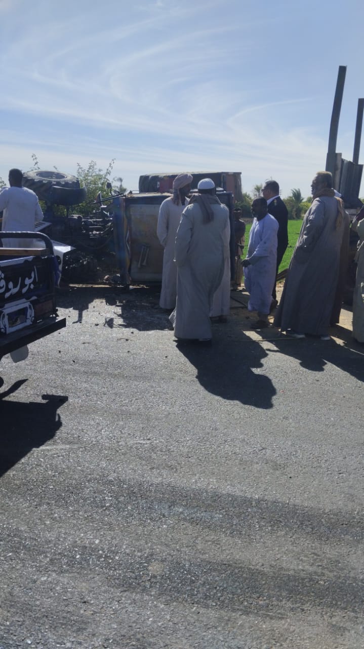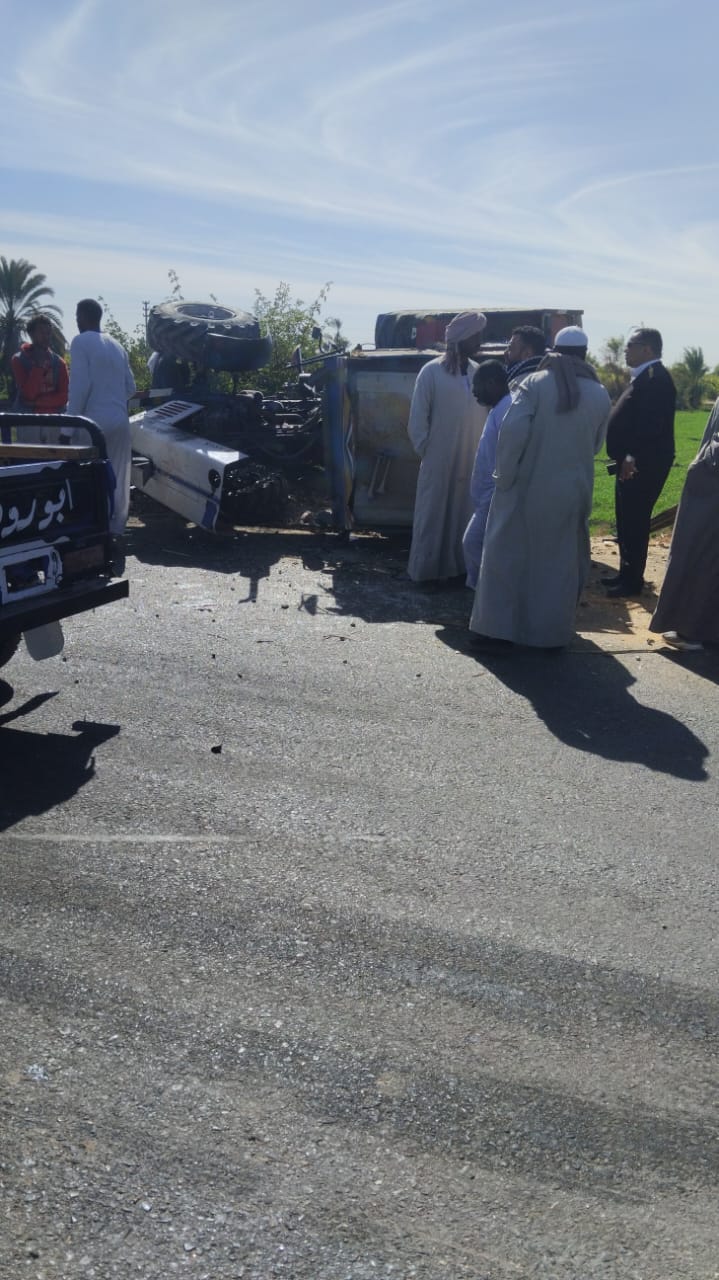 مصرع وإصابة 10 أشخاص في تصادم جرار زراعي وسيارة نقل بأسوان.. صور