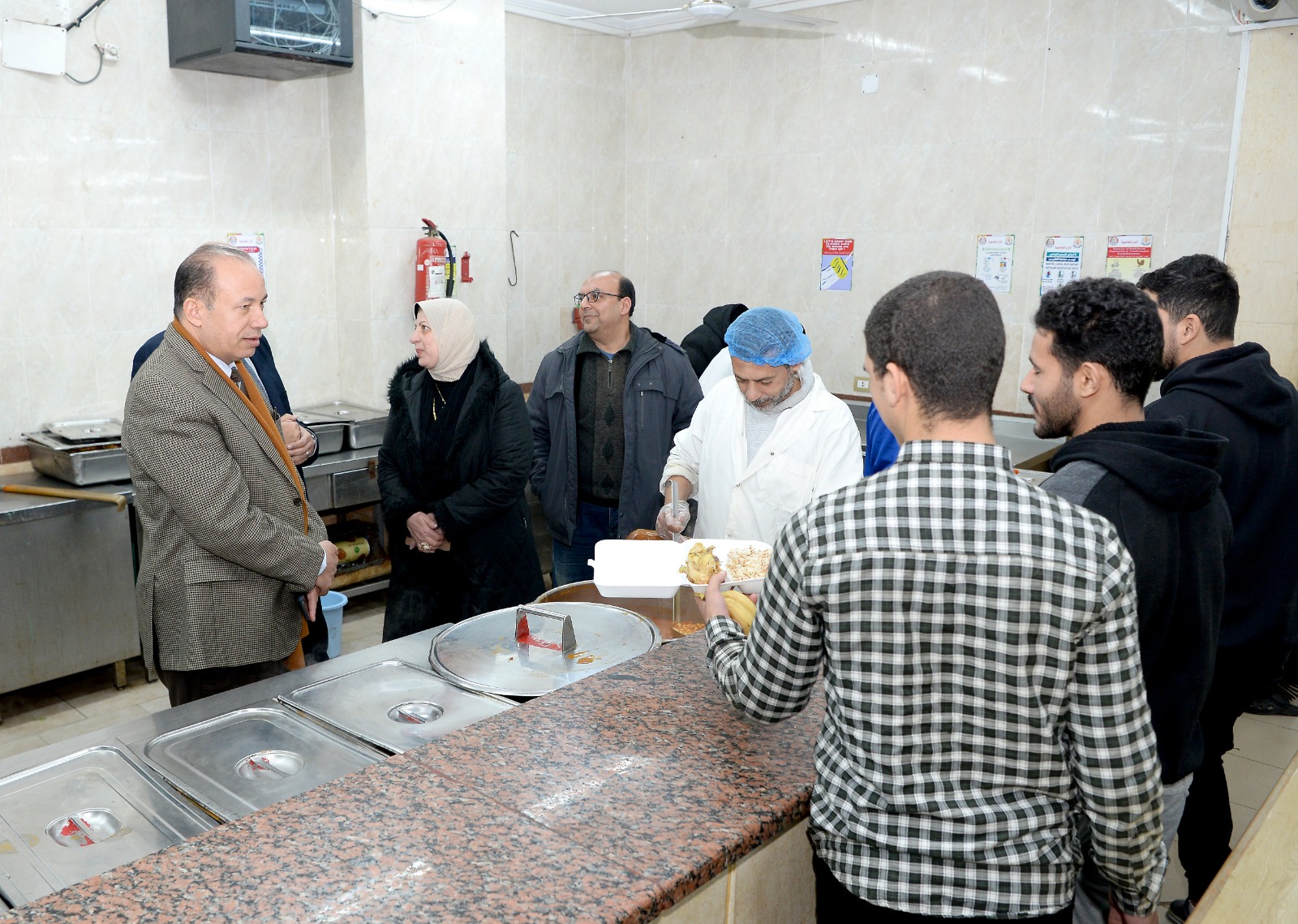 و رافقه خلال الجولة الدكتور محمد عطيه البيومي، نائب رئيس الجامعة لشئون التعليم والطلاب، بحضور هيام عبد العال، مدير عام المدن الجامعية، ووليد صفوت، نائب مدير عام المدن.