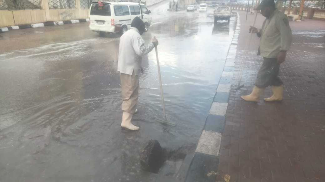 و بدأت شركة مياه الشرب والصرف الصحى ومجالس المدن والمراكز والأحياء، فى تطهير بالوعات الأمطار لتصريف المياه أولا بأول.