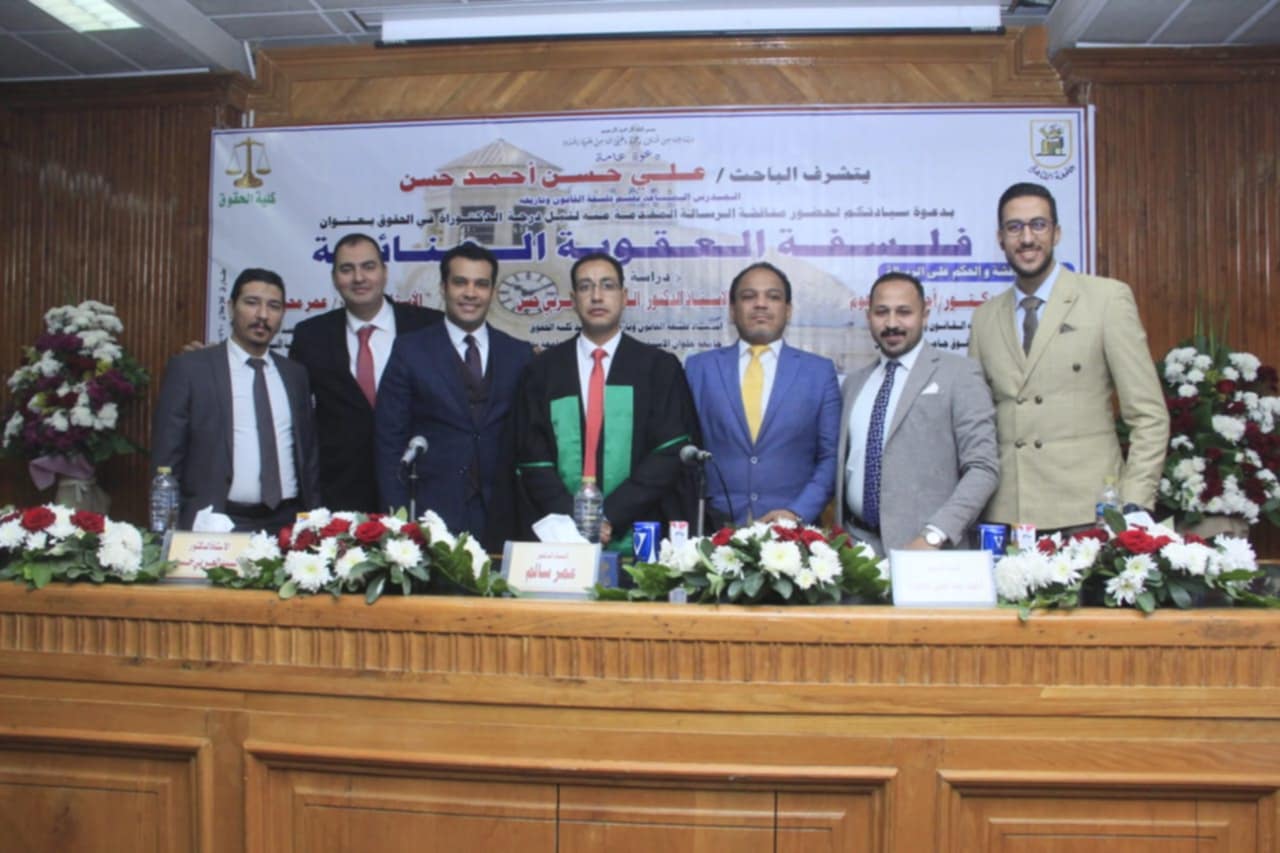 بحقوق القاهرة.. رسالة دكتوراة "بعنوان فلسفة العقوبة الجنائية وآثر التكنولوجيا الحديثة" للباحث على حسن