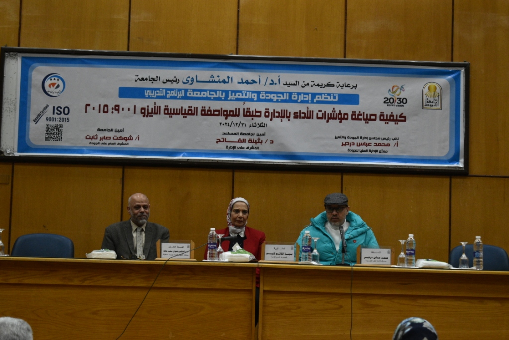 "صياغة مؤشرات الأداء بالإدارة طبقاً للمواصفة القياسية الأيزو٩٠٠١: ٢٠١٥"برنامج تدريبي بجامعة أسيوط