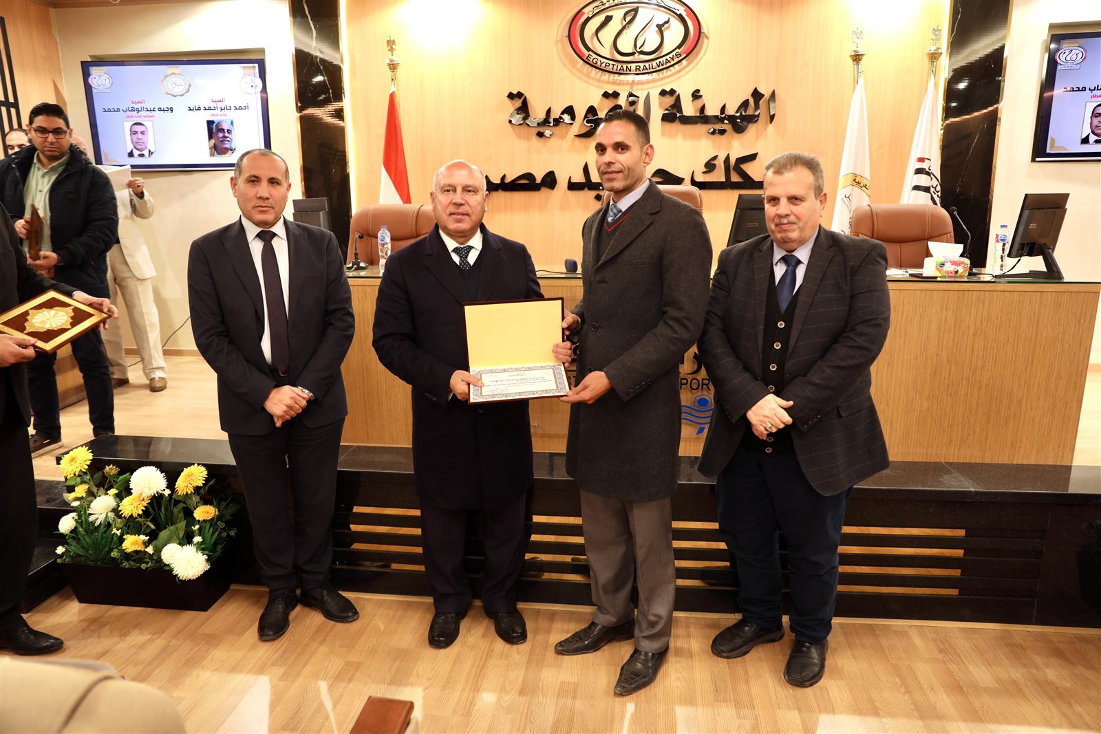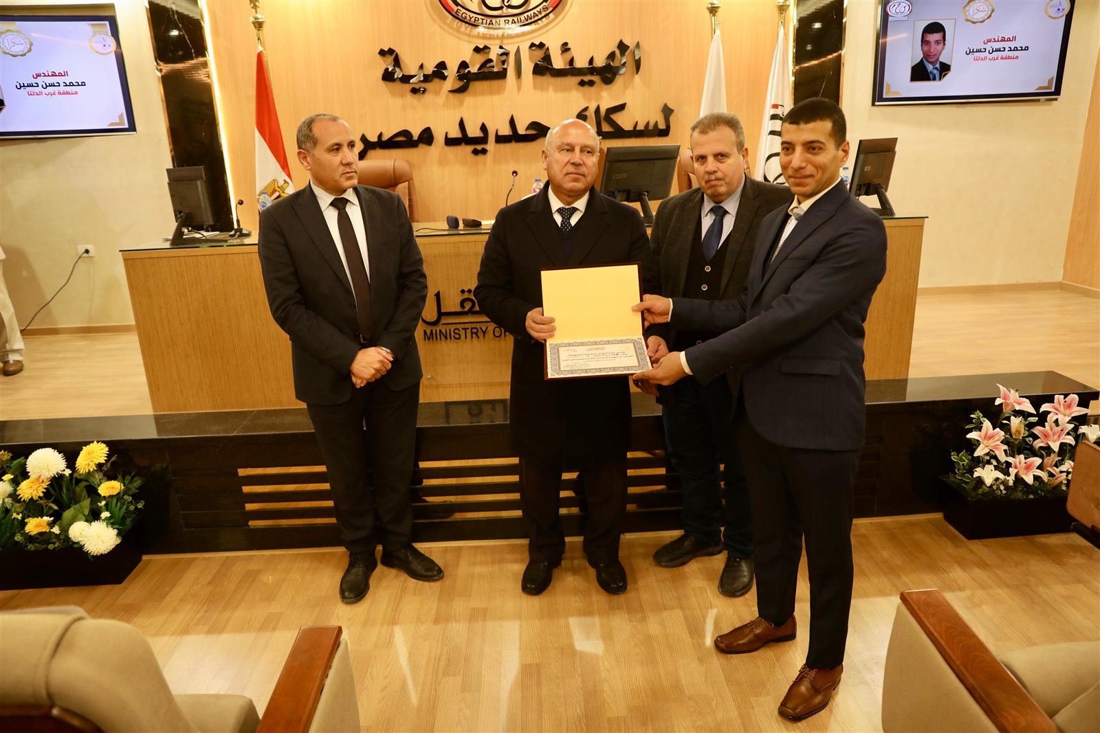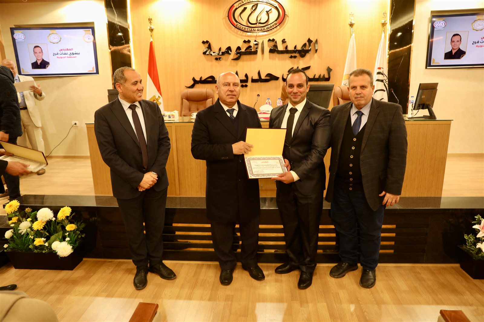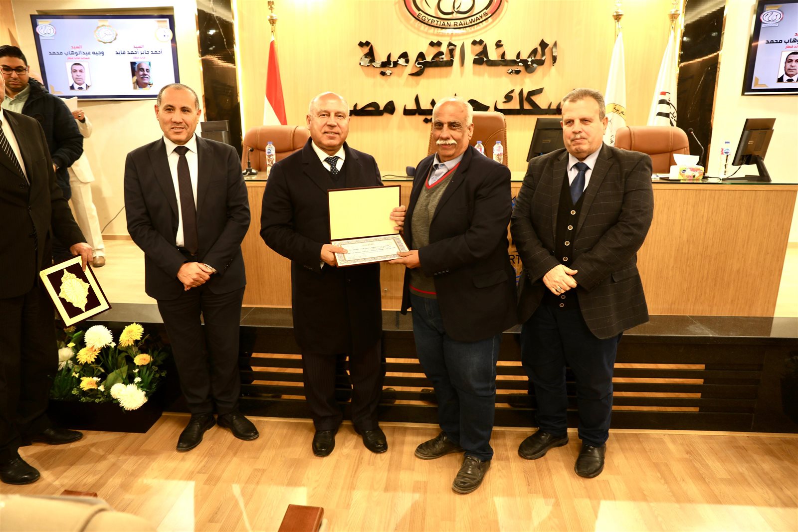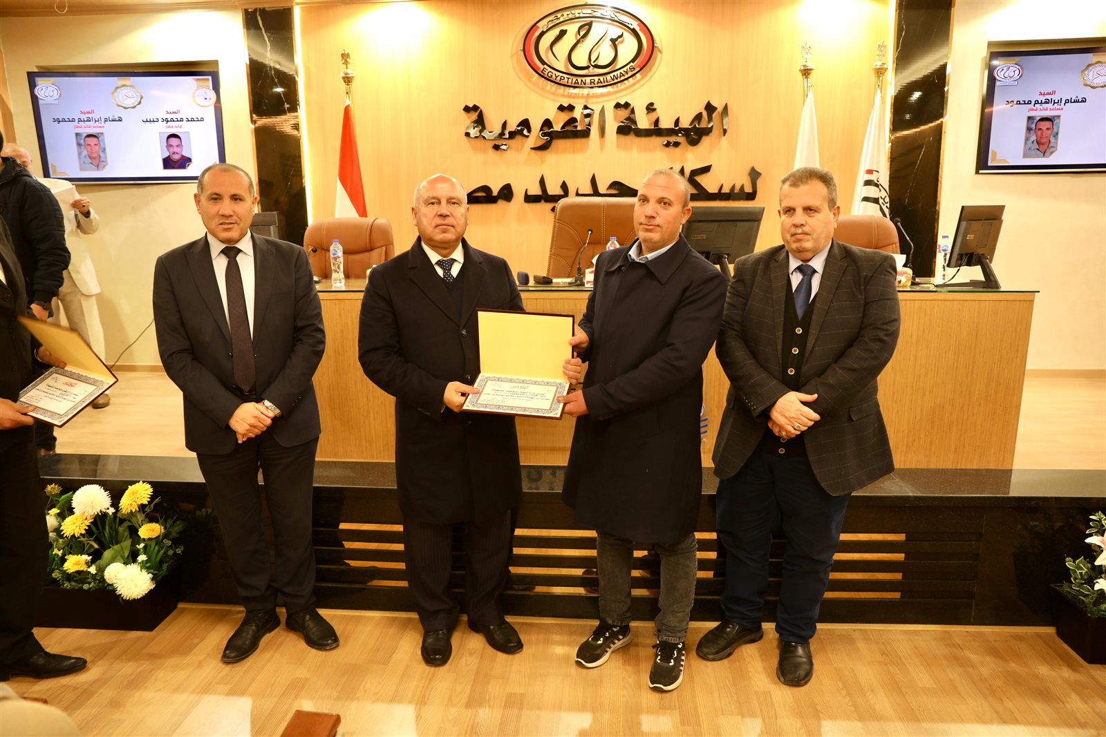 وفي إطار الاهتمام الكبير الذي توليه وزارة النقل للعنصر البشري بالسكة الحديد بإعتباره أحد مكونات الخطة  الشاملة لتطوير السكك الحديدية ، قام  الفريق مهندس / كامل الوزير -  نائب رئيس مجلس الوزراء للتنمية الصناعية وزير الصناعة والنقل وبحضور رئيس وقيادات هيئة السكك الحديدية بتكريم  عدد (30  ) من العاملين بالهيئة  وبيانهم كالتالي :  ( 2  مهندس ، 2 رئيس قطار  ، 14 قائد قطار ومساعديهم  ، 1 مشرف قطارات ، 1 مضيف قطار ، 3  خفير  وفني منفذ  ، 3 ملاحظ بلوك  ، 2ملاحظ تكييف و خراط  ، 1 مستصحب عربة القوى ، 1 فنى براد  ) والذين قاموا بالالتزام باللوائح والقوانين والتعليمات ومنعوا مخاطر وحوادث كانت علي وشك الحدوث وحافظوا علي أرواح عدد من المواطنين والركاب وتميزوا في أداء اعمالهم .