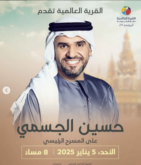 يقام حفل حسين الجسمي يوم الأحد 5 يناير، على أحد المسارح الكبرى في القرية العالمية بـ دبي.