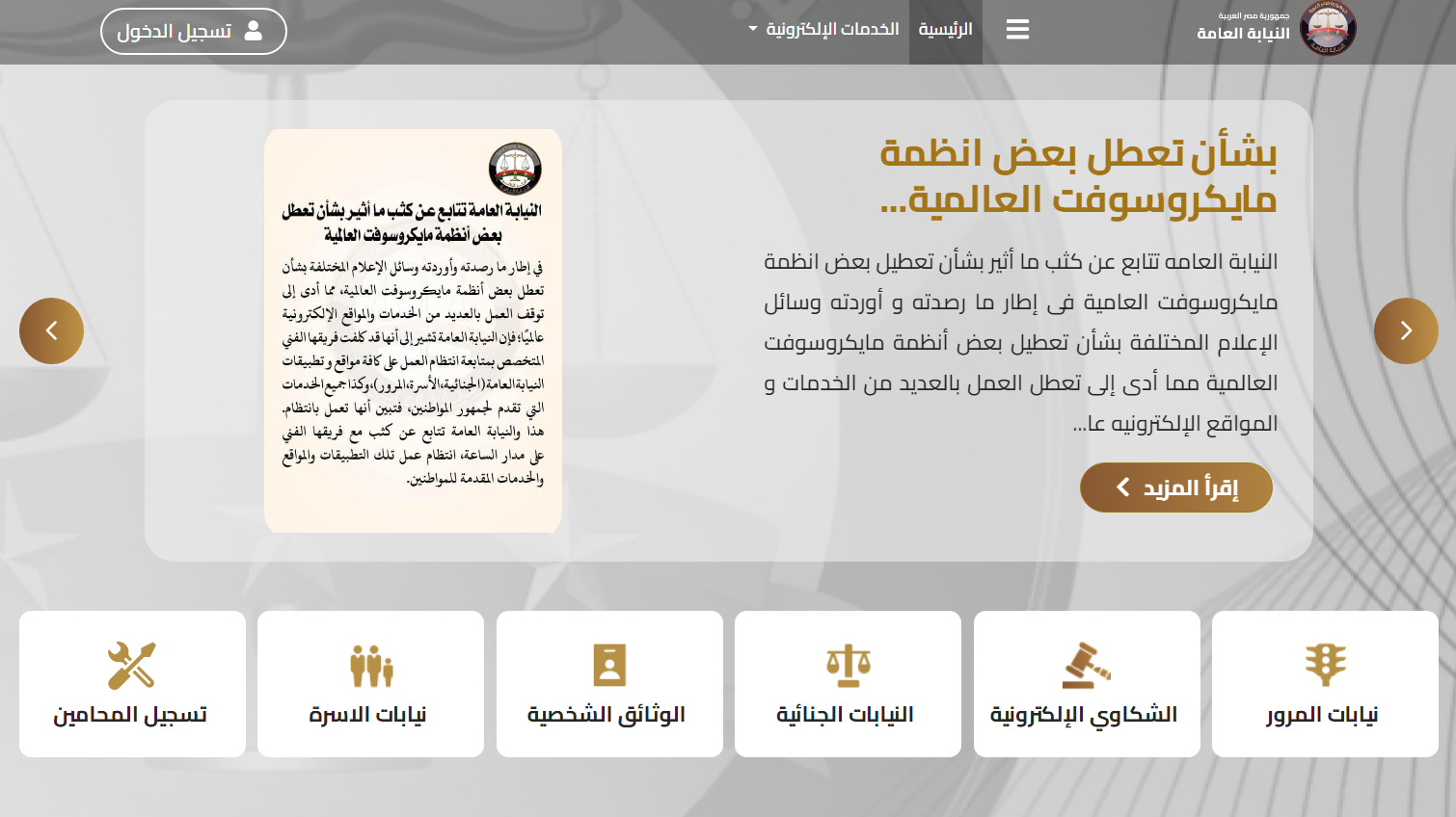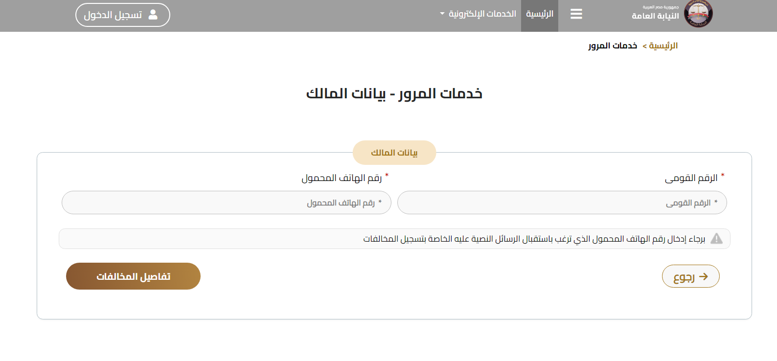 أولاً: لدخول إلى موقع النيابة العامة للاستعلام عن مخالفات المرور.