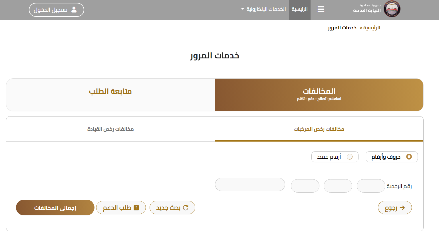 رابعًا: يتم إدخال رقم الرخصة «حروف وأرقام» في الخانة المخصصة لها، والضغط على إجمالي المخالفات.