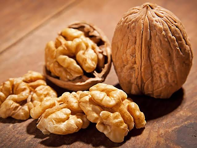 الجوز غني بأحماض اوميجا 3 الدهنية والبيوتين وفيتامين E، ويغذي جذور الشعر ويمنع تساقطه ويحافظ على لمعان الشعر.