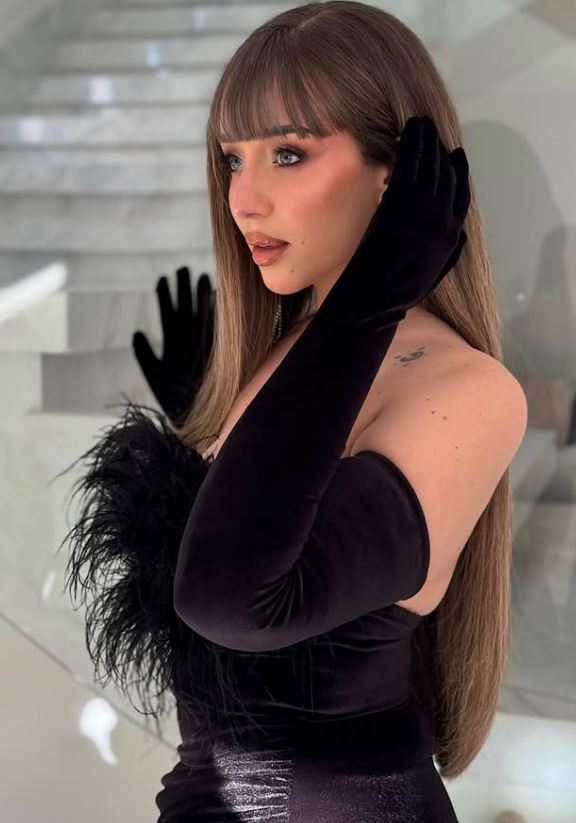 وبدت فرح الزاهد بإطلالة ساحرة مفعمة بالأنوثة والجاذبية في آن واحد، مواكبة لأحدث صيحات موضة فساتين شتاء 2025، حيث ارتدت فستانًا مجسمًا طويلًا، ينتمي لقصة الكب، يتميز بجوانتي طويل، صمم الفستان من قماش المخمل باللون الأسود، والفستان عكس قوامها الرشيق ووزنها المثالي.