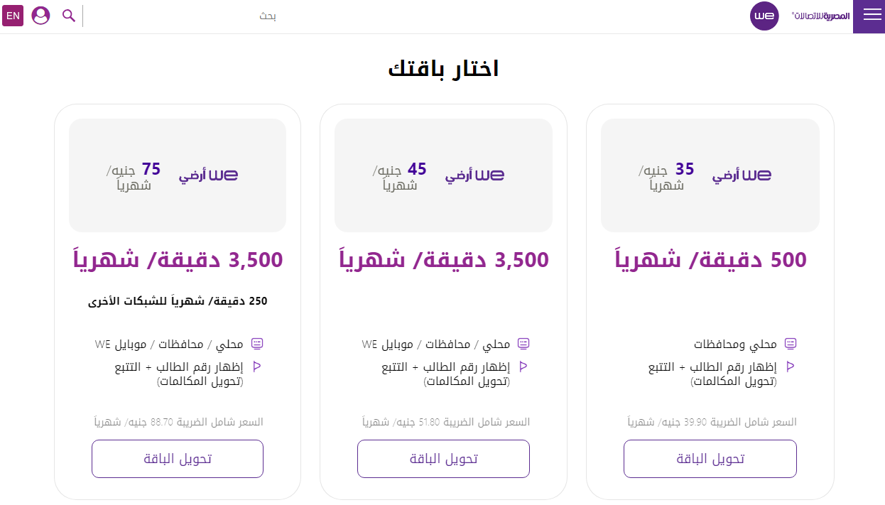 تحديث أسعار باقات فواتير الخط الأرضي لشركة WE