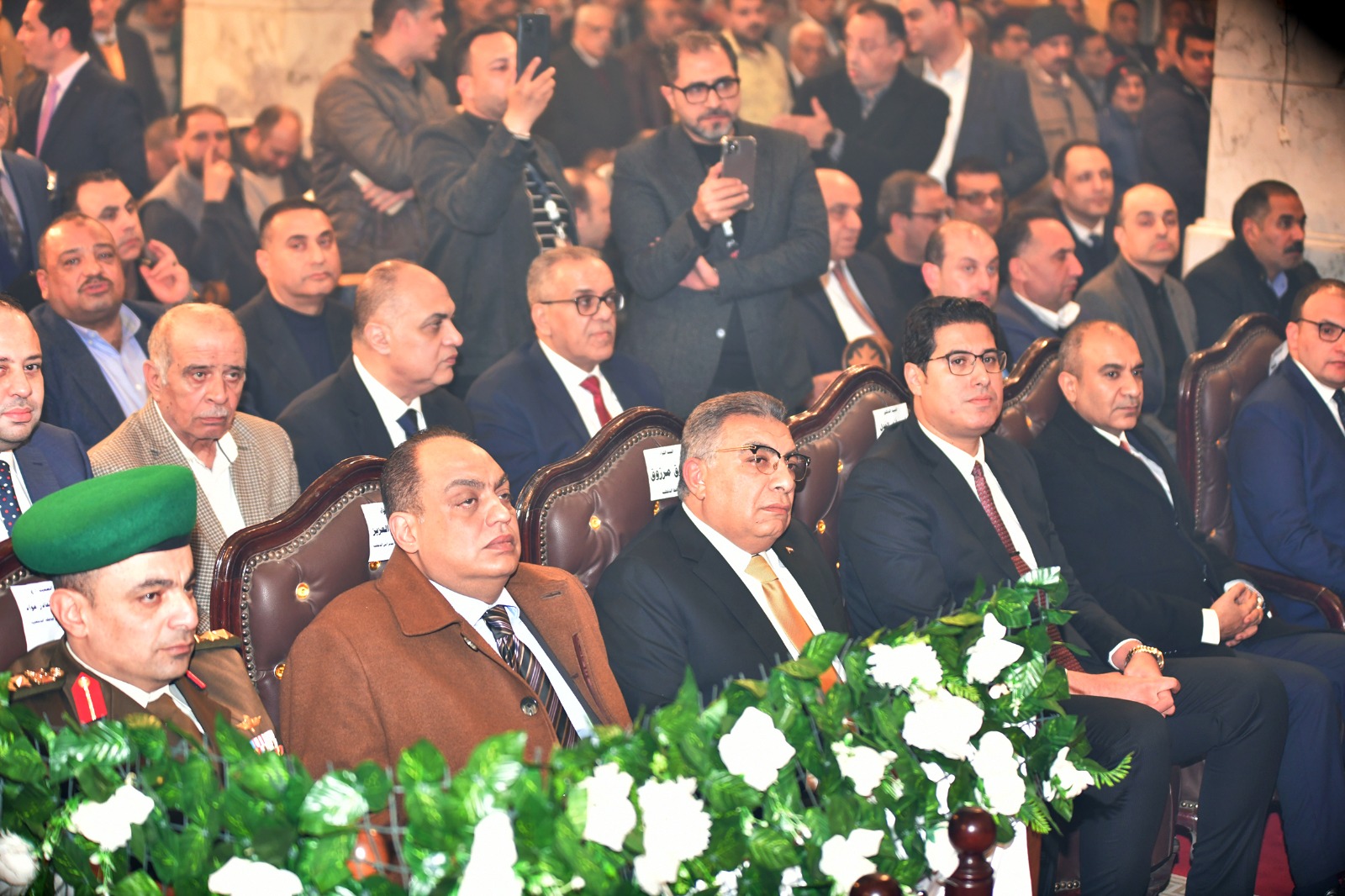 ورافقه اللواء دكتور حسام عبد العزيز مدير أمن الدقهلية، والدكتور أحمد العدل نائب المحافظ، واللواء محمد صلاح ابو كريشة السكرتير العام للمحافظة، والعميد الهيثم عواد المستشار العسكري للمحافظة، والدكتور صفوت نظير وكيل وزارة الأوقاف، والقيادات الأمنية والتنفيذية، وكان في استقبالهم نيافة الأنبا اكسيوس اسقف كنيسة الملاك ميخائيل والعذراء مريم، وقيادات الكنيسة ولفيف من أعضاء مجلسي النواب والشيوخ والقيادات التنفيذية والأحزاب السياسية ومنظمات المجتمع المدني.