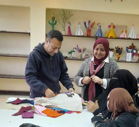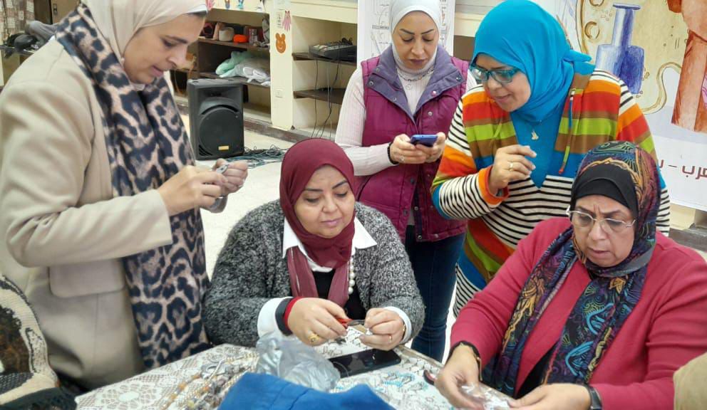 من ناحية أخرى، تواصلت فعاليات الورش الفنية والحرفية، وقام المدرب عماد عاشور خلال ورشة الخيامية بتدريب المشاركات على كيفية تثبيت الأقمشة لعمل أشكال زخرفية، وقامت المدربة منار الخولي بتدريبهن على تصميم حقائب نسائية وبراويز باستخدام قماش چينز معاد تدويره مع تزيينه بالخرز، وواصلت المدربة فاتن حسن تصميم حقائب بالخرز اللولي، فيما قامت المدربة هيام عبد الحميد بشرح تقنيات جديدة لتصميم الأعقاد وأساور اليد، خلال ورشة الإكسسوارات.
