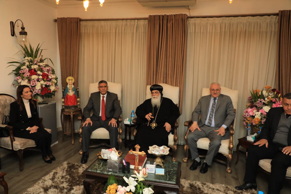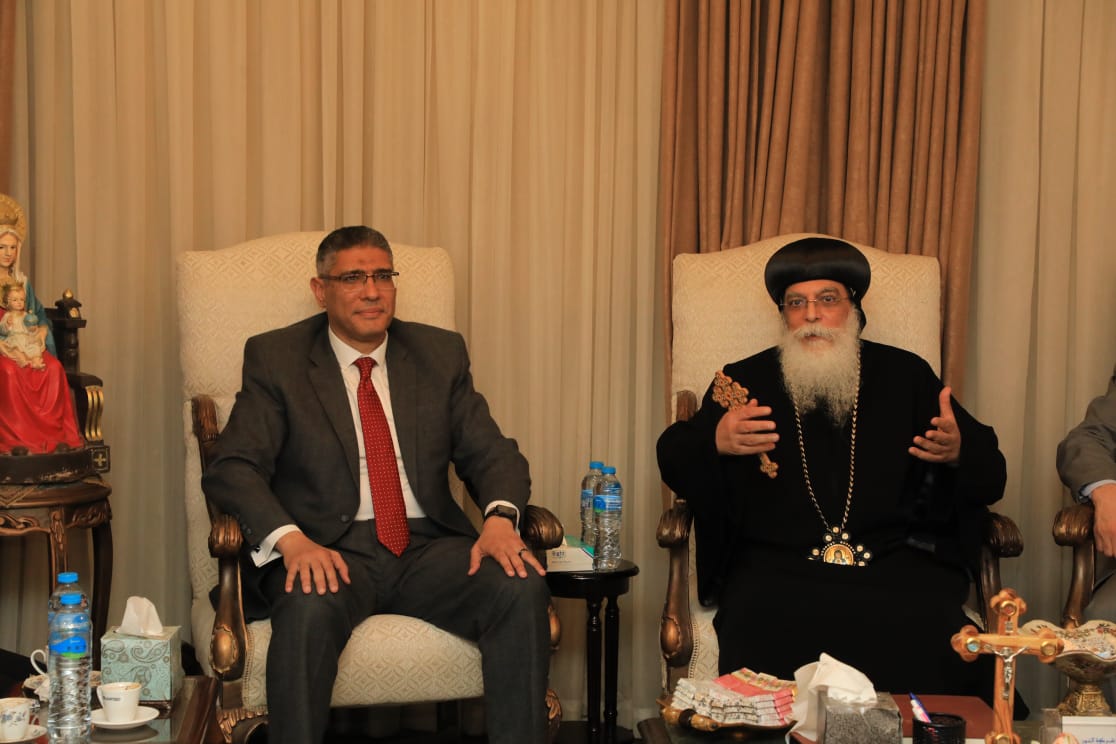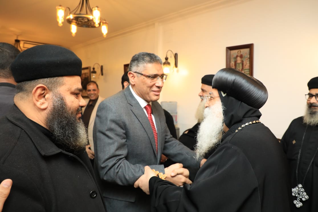محافظ الجيزة يزور مقر مطرانية أكتوبر وأوسيم للتهنئة بعيد الميلاد المجيد