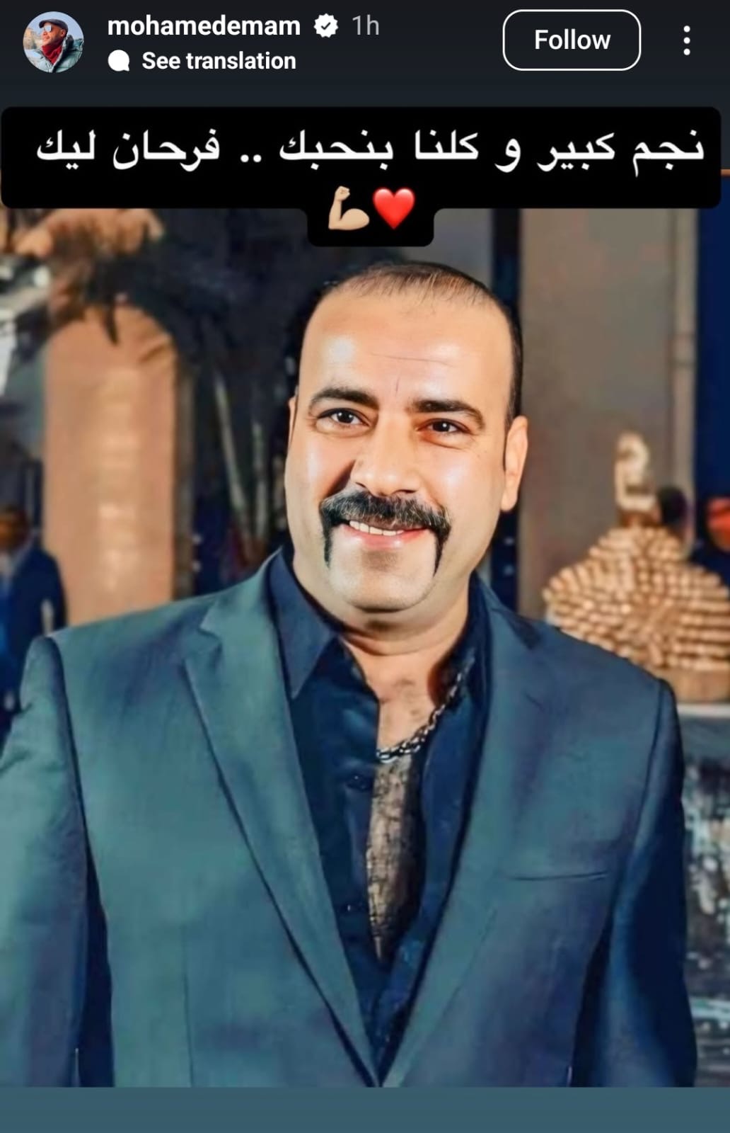 وعلق قائلا ... "نجم كبير وفرحان بيك وكلنا بنحبك مبروووك نجاح الدشاش"