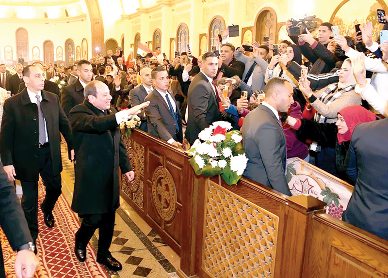 الأقباط يستقبلون «السيسي» بالورود والزغاريد وهتاف «عاشت مصر».. والبطريرك: وحدتنا باقية إلى آخر الأزمنة