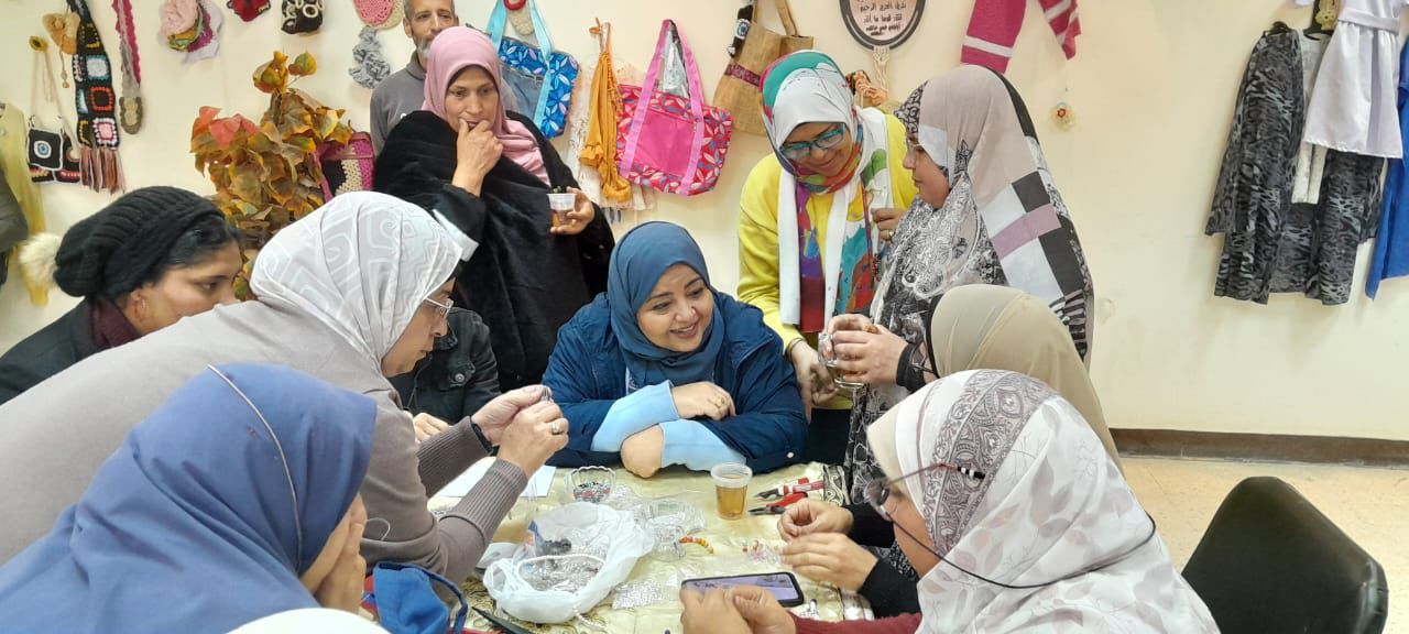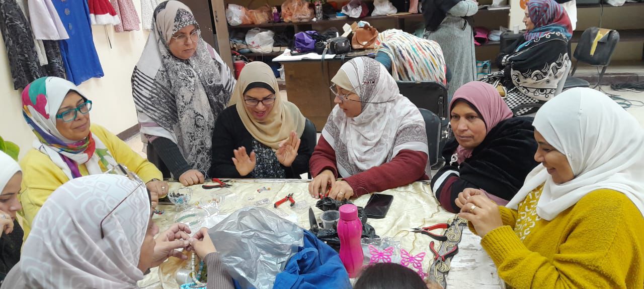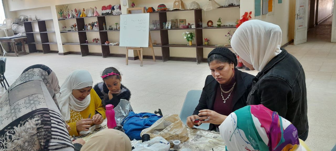 من ناحية أخرى، تواصلت فعاليات الورش الفنية والحرفية، وقام المدرب عماد عاشور خلال ورشة الخيامية بتدريب المشاركات على وضع اللمسات النهائية للأعمال الفنية نتاج الورشة، وواصلت المدربة منار الخولي تدريباتها خلال ورشة إعادة تدوير خامات البيئة، وقدمت المدربة فاتن حسن شرحا عمليا لتقفيل الحقائب المصنوعة من الخرز، فيما قامت المدربة هيام عبد الحميد خلال ورشة الإكسسوارات، بتدريبهن على إنهاء أعمالهن بدقة وإتقان.
